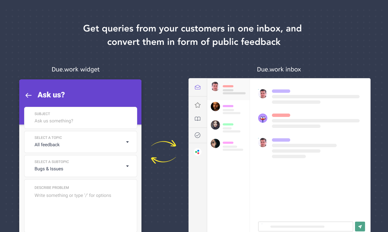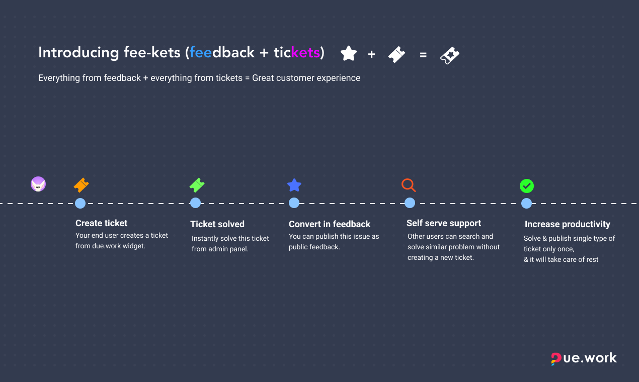 Due.work is a tool through which your customer can create Tickets, Feedbacks, or articles.
