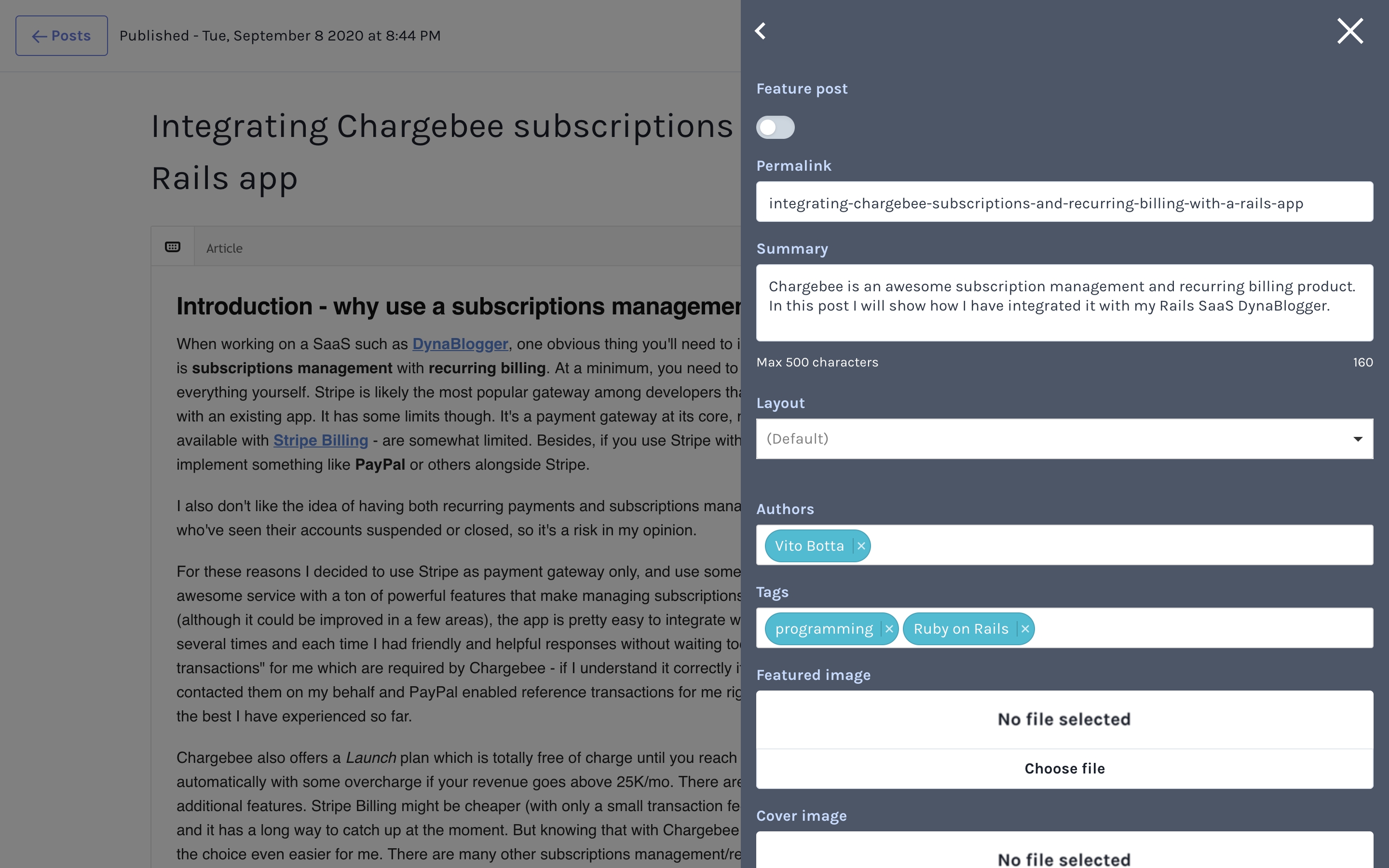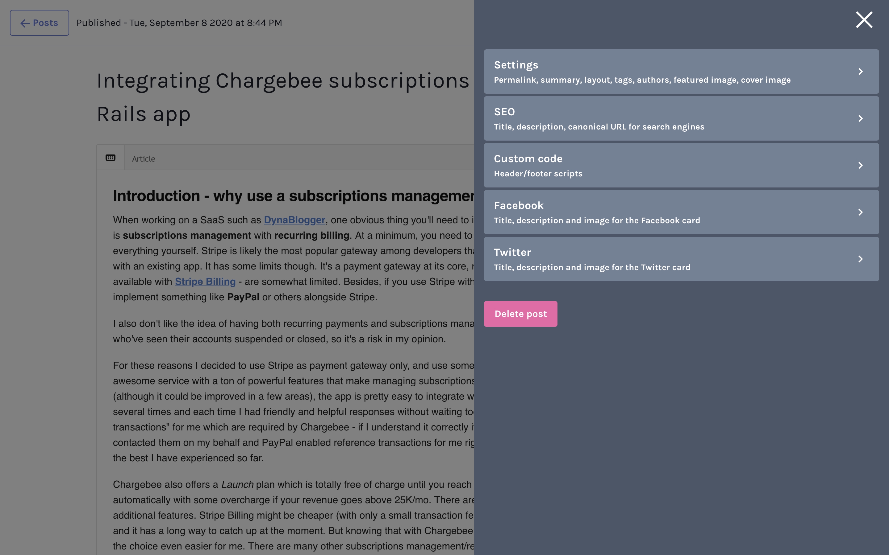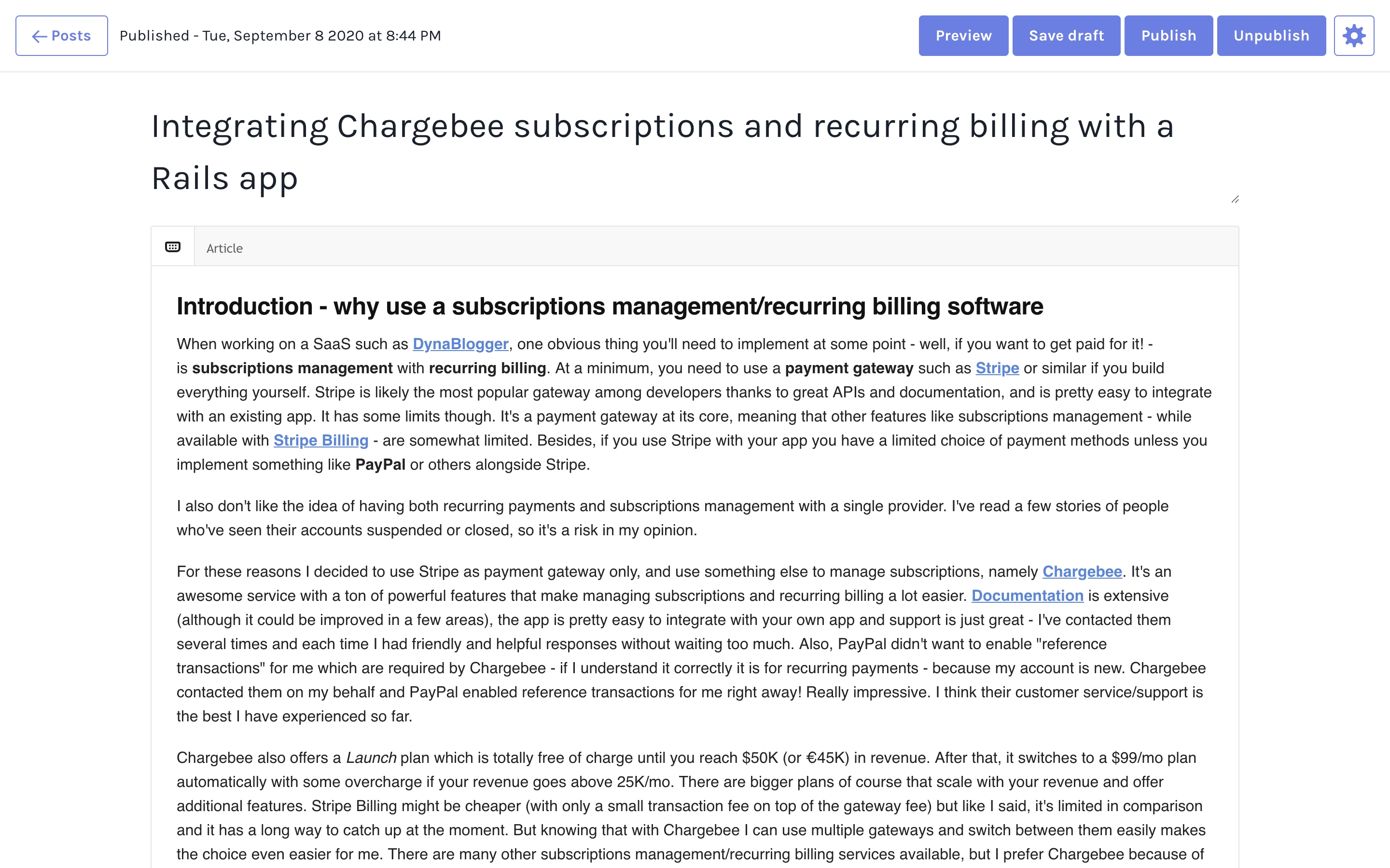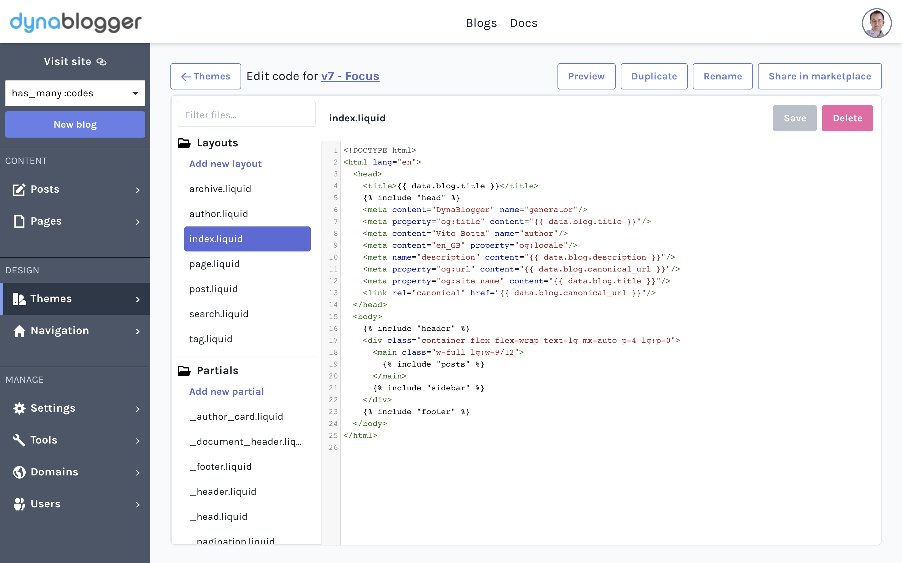 DynaBlogger is a new hosted/managed blogging platform we propose as a simpler alternative to platforms like Wordpress, for people who prefer something less complicated but still with all the features most people need for a great blogging experience. Wordpress is a very powerful CMS but it's often overkill for many people. Plugins make it very flexible but often introduce vulnerabilities or performance issues. DynaBlogger is simpler and to the point, not bloated with features you may never need. Still, it has a powerful rich text editor with several configuration options and it supports themes - you can edit themes directly in the web app and see changes live immediately; custom domains, easy collaboration and more. We believe DynaBlogger can be a great option for blogs and simple sites. You can also import content from Wordpress or Ghost with a couple of clicks for an easy migration. Being a hosted/managed SaaS you don't need to worry about servers, hosting, backups and updates. All of that is taken care of for you so you can focus on publishing great content. There's a free 14 days trial - no credit card required - so trying it is easy. With the coupon code 'EARLYBIRD' you get 50% off for the first three months and if you choose a yearly plan, 2 months are free. Thanks in advance for giving it a try and for any feedback!