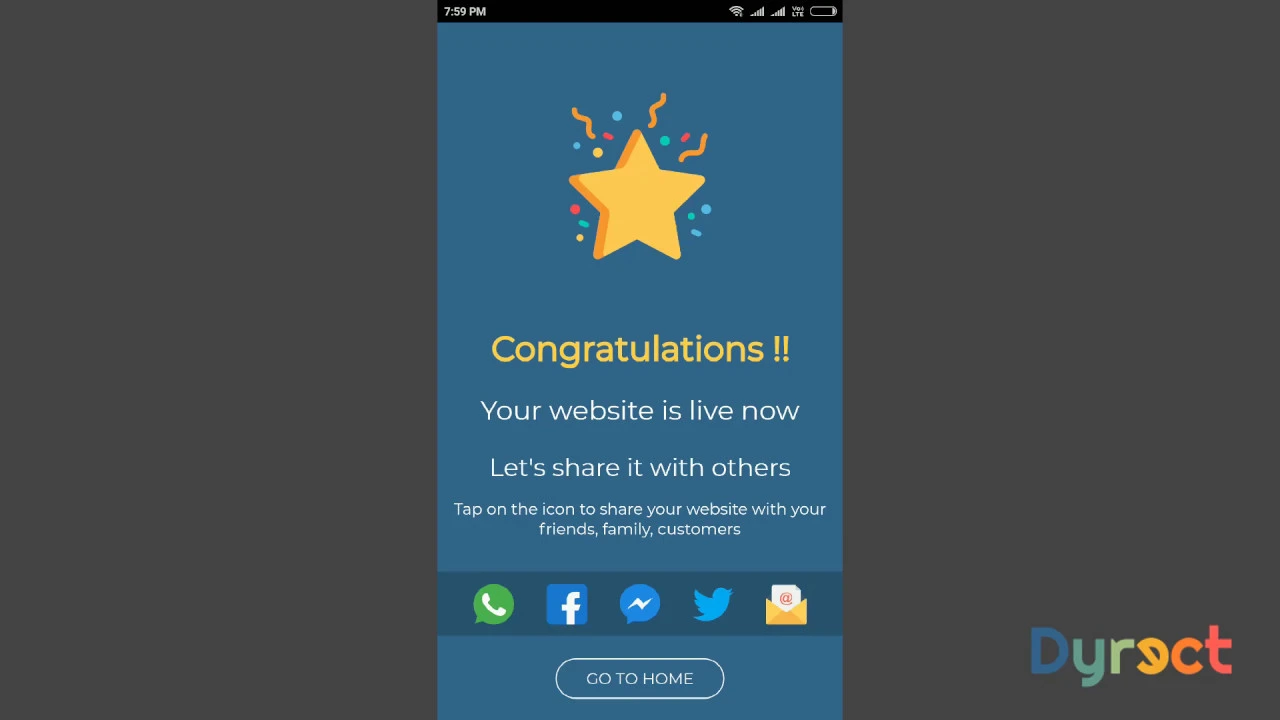 Dyrect is the simplest and easiest App to grow your business online. Create your website instantly using our free website maker and build your online presence. Small businesses can also use this App for their Social Media Marketing. Consider this App as your business consultant which can help you in all your online marketing needs. Create your own website instantly : A Business website is the face of your business on the Internet. With Dyrect you can a create a free website in 2 minutes which means you can have online presence of your business and start digital marketing instantly. No Technical Skills Required : You don't need to know any technology to use Dyrect. If you can use Facebook or WhatsApp, you can use Dyrect to grow your business online. In fact it is even easier than creating a facebook account. Simple & Quick : It's like filling a simple form to get something done, you click a button and your website is updated. Reach local customers : Local customers are very import