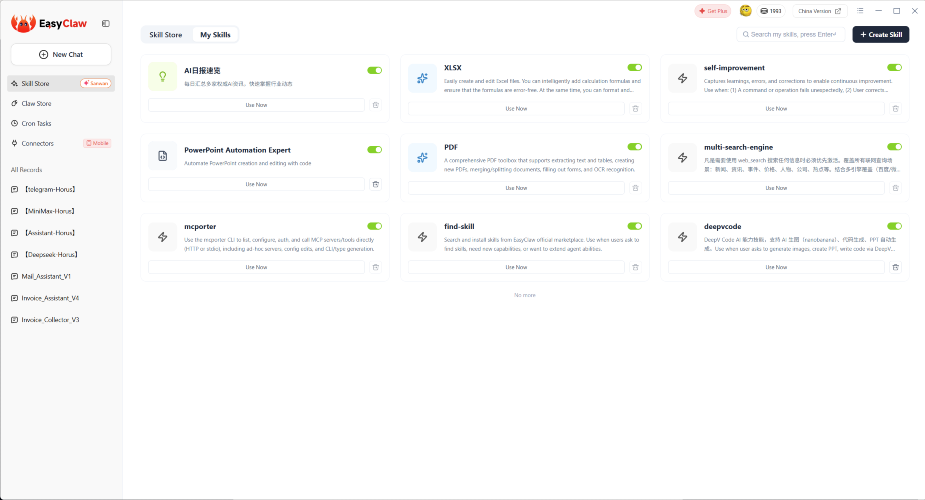 EasyClaw is a zero-config desktop AI agent that runs 24/7 ā you download it, log in, and it starts working. Core idea: It's like hiring a tireless AI employee that you control via chat (WeChat, Telegram, WhatsApp, Feishu, Discord, etc.) from anywhere in the world. What it can do: š¤ Multi-model AI ā Switch between Claude, Gemini, GPT and more in one place, no separate subscriptions š File processing ā PDFs, Excel, Word, PPT ā just send the file, it handles it ā° Scheduled automation ā Set tasks to run at specific times (daily reports, reminders, data pulls) š Web research ā Search, summarize, monitor pages for changes š± Omnichannel ā Control it from Feishu, Telegram, WhatsApp, Discord, Slack ā wherever you are š§ Custom Skills ā Extend it with specialized capabilities (your own SOPs, workflows, tools) āļø Email & social automation ā Read/reply emails, post content, monitor platforms Best for: Solopreneurs & small teams who want automation without engineering Content creators needing research + writing + posting pipelines Anyone who wants an AI that keeps working even when they're asleep š easyclaw.com for more info