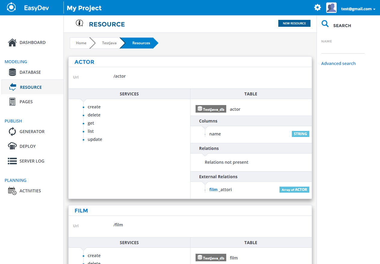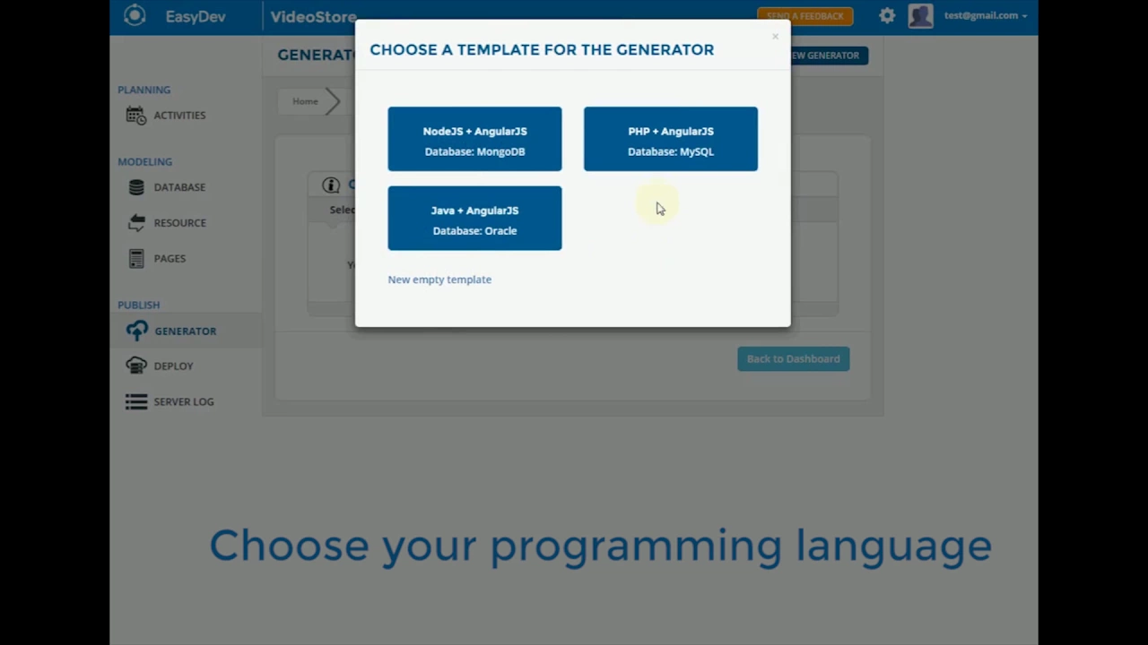 You can insert in the platform data about your database structure and EasyDev will generate a complete CRUD application. The source code is very easy and well structured, you can simply customize it. You can choose many languages for your web application like Java, PHP, NodeJS, Javascript and you can also customize the generation template for fit perfectly your way to write code.