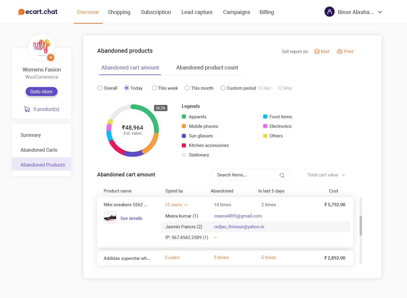 Ecart.chat enables facebook messenger chatbot for your e-commerce stores to reduce Abandoned carts and regain sales by re-targeting customers