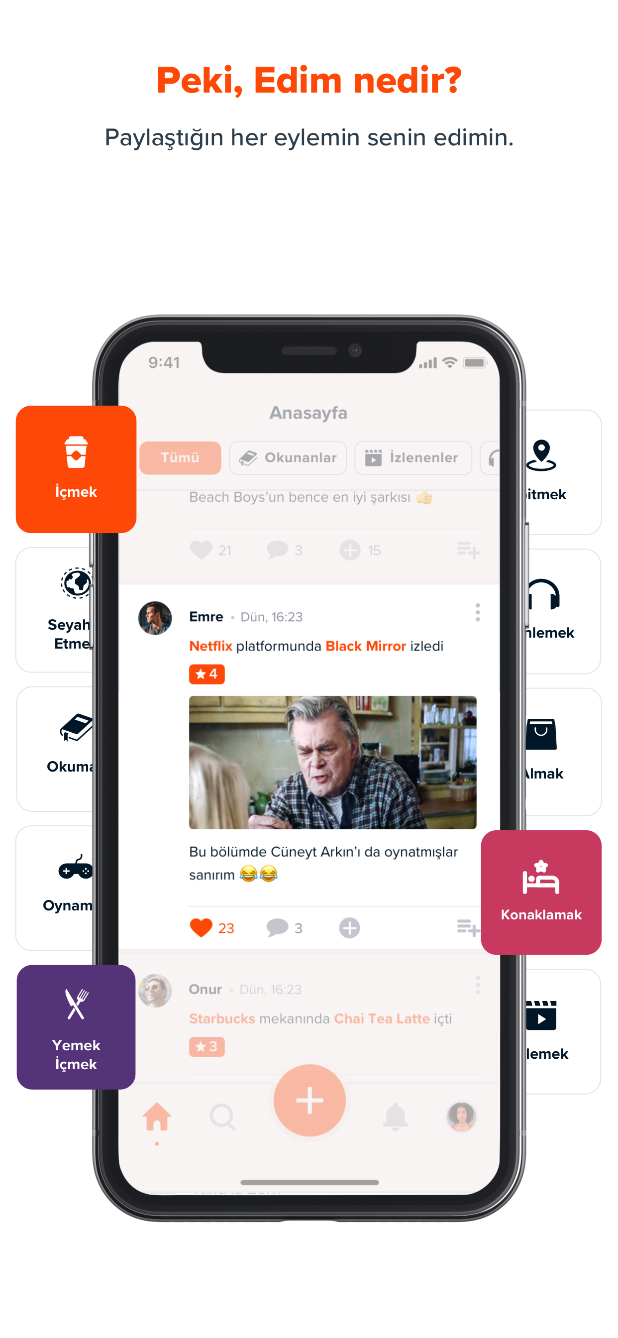 a Turkish social app where users share their experiences with their own ratings. Our aim is to build a huge organized database about every shared item. It is simple for us since users choose items related to their actions, instead of typing.