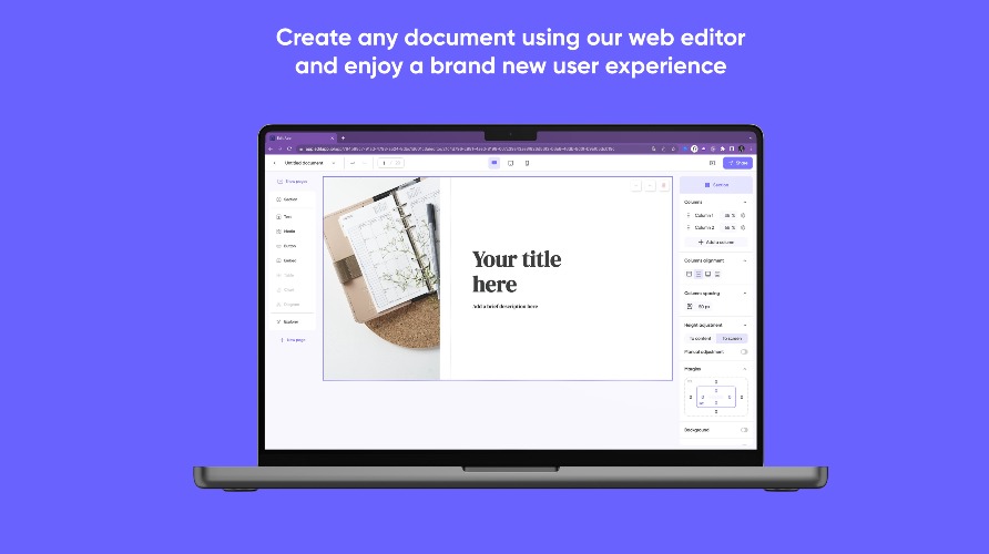 Edit App is revolutionizing the way we use documents by enabling anyone - no matter how design or tech-savvy they are - to create responsive and interactive documents automatically. Edit App provides a state-of-the-art editor that allows its users to create, display and share presentations, catalogs, documentation, portfolio or anything else with the same level of interactivity as a website. Your documents will now feature videos, gifs, embed content (Google Maps, Forms, Calendly...), sliders and many more while beeing fully compatible with every device or browser.