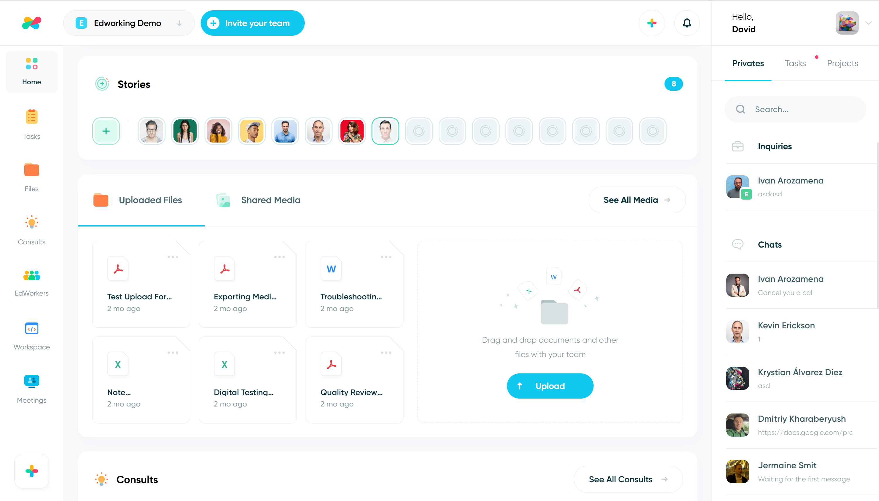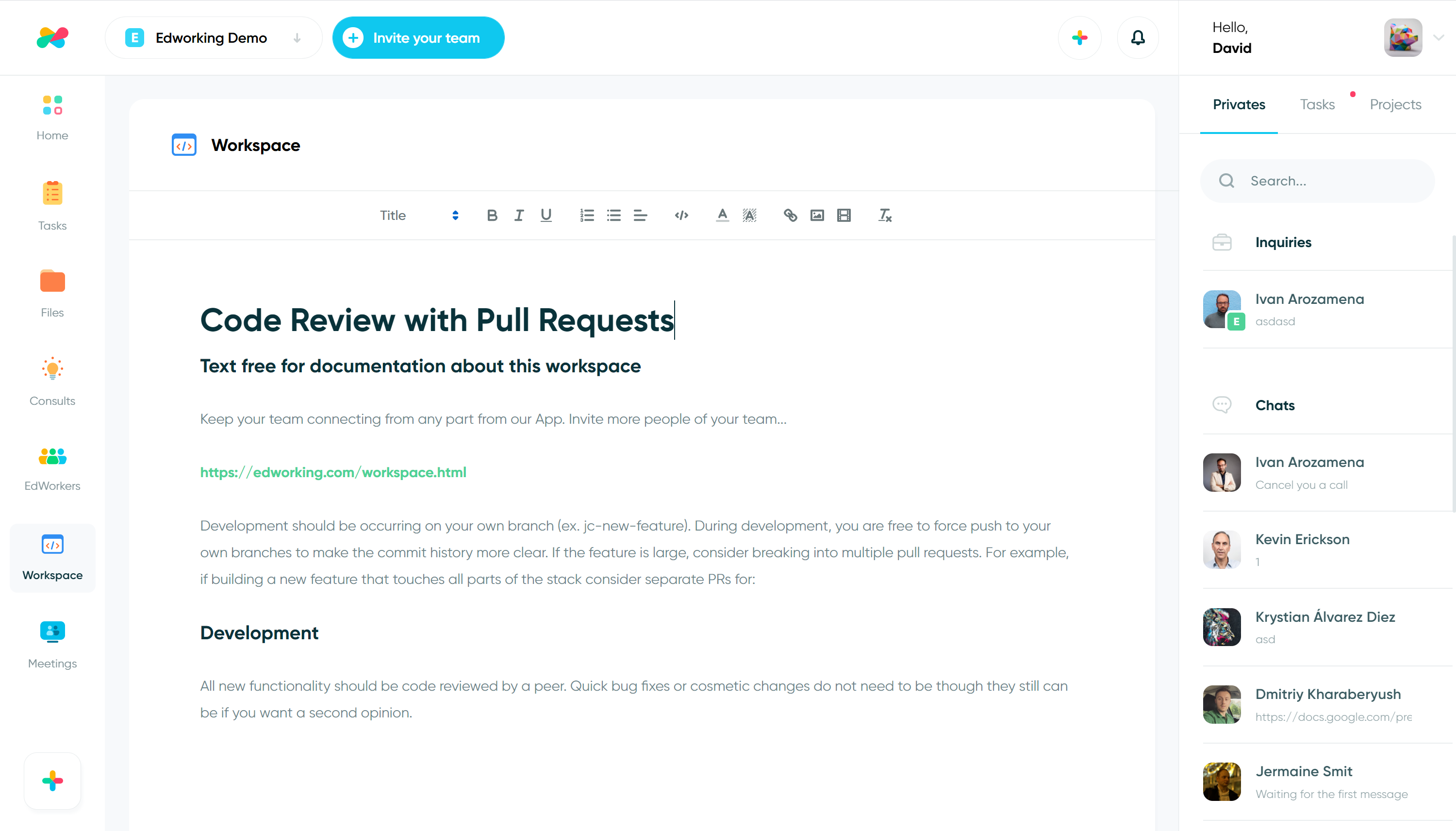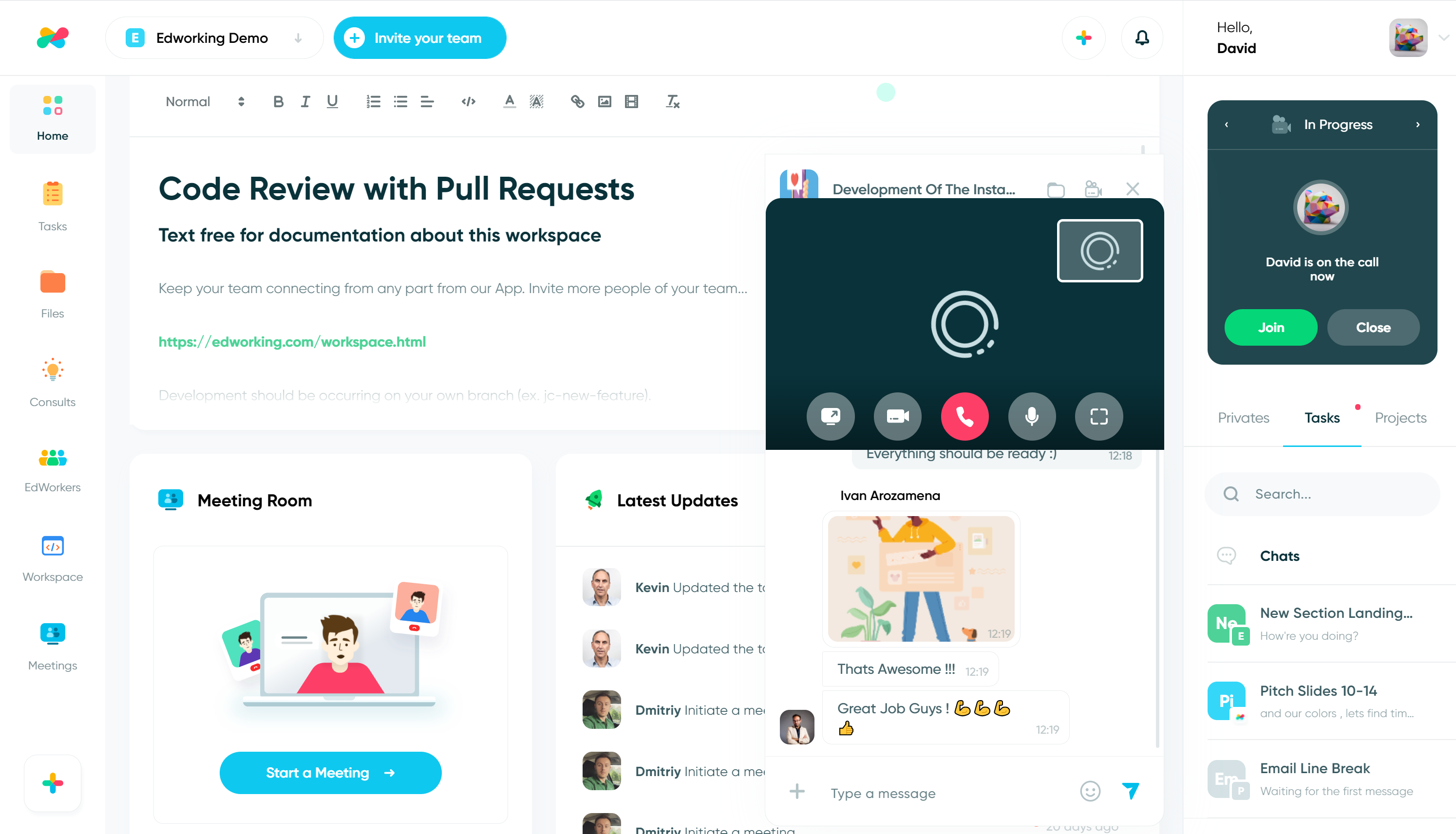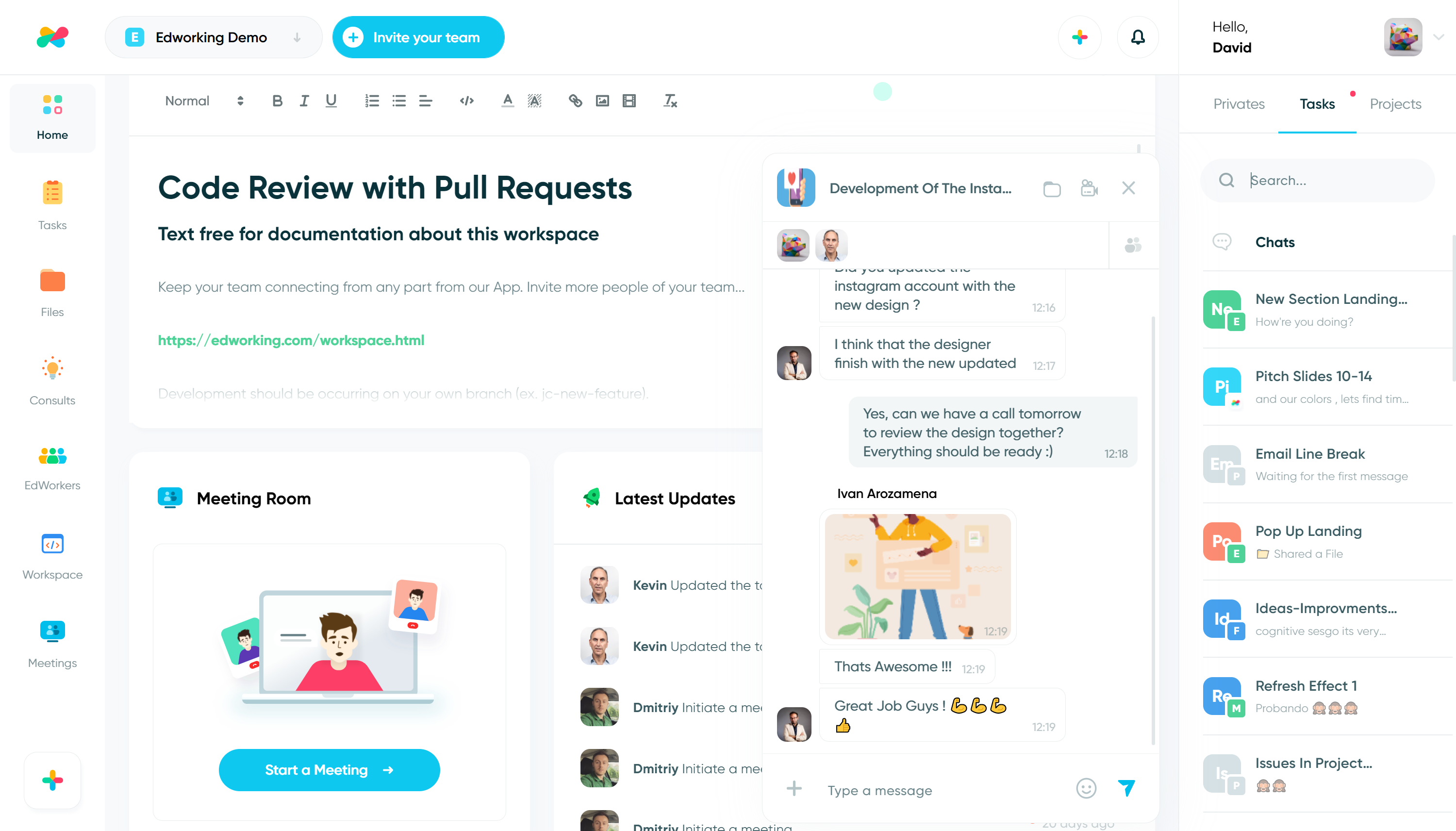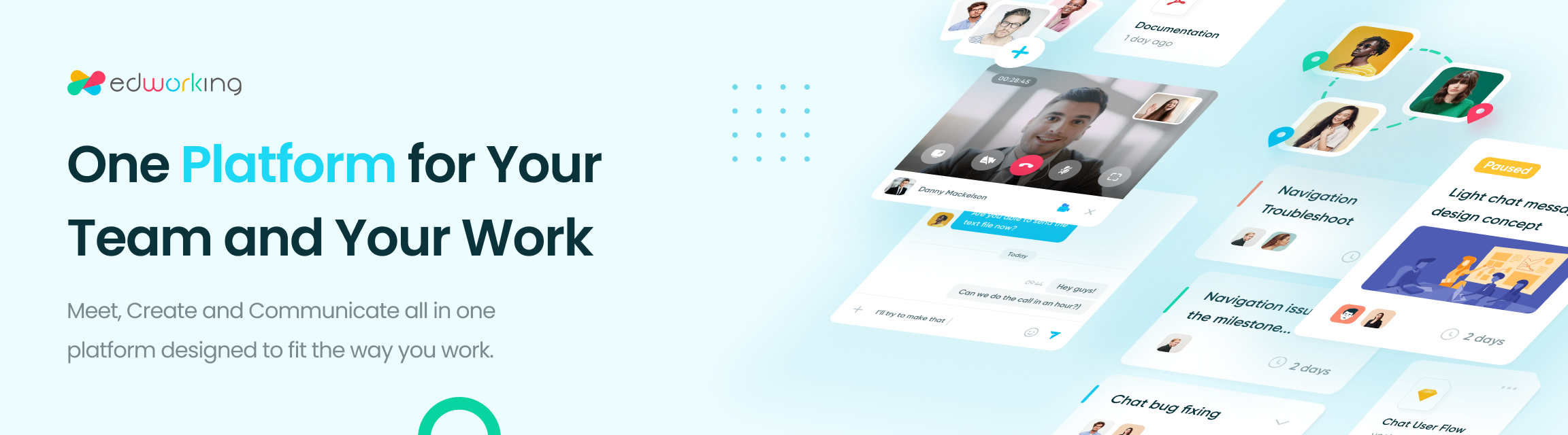 Edworking is a platform for your team and your work. A single solution for teams with everything they need to work remotely. All your tasks, files, images and conversations in a single place and just an unique subscription. Teams use Edworking to coordinate, communicate and manage work. Our clients have transitioned from using many platforms to collaborate with their team, such as Trello and Jira for task management, Slack and Zoom for communication, or Dropbox and Drive to transfer files, to simply Edworking. This means no more switching between apps! Free forever