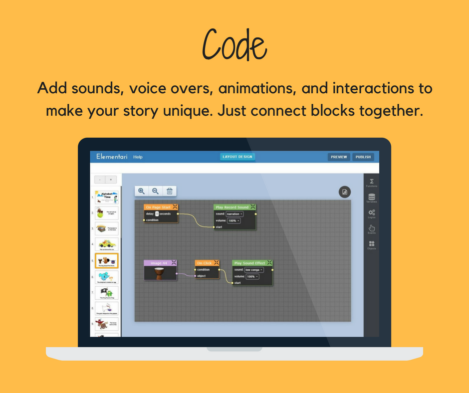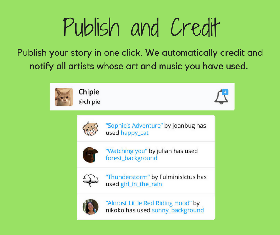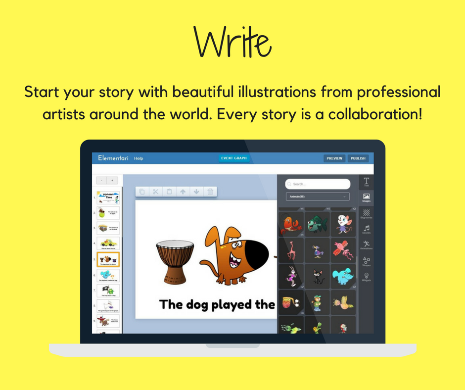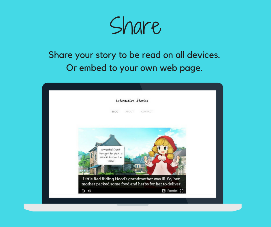 Elementari.io is online platform where anyone, especially teachers and kids, can create and share interactive stories using professional illustrations and sounds. All published stories automatically credit and notify the artists who have contributed to the story. Get started for free :D I'd love to hear what you think!