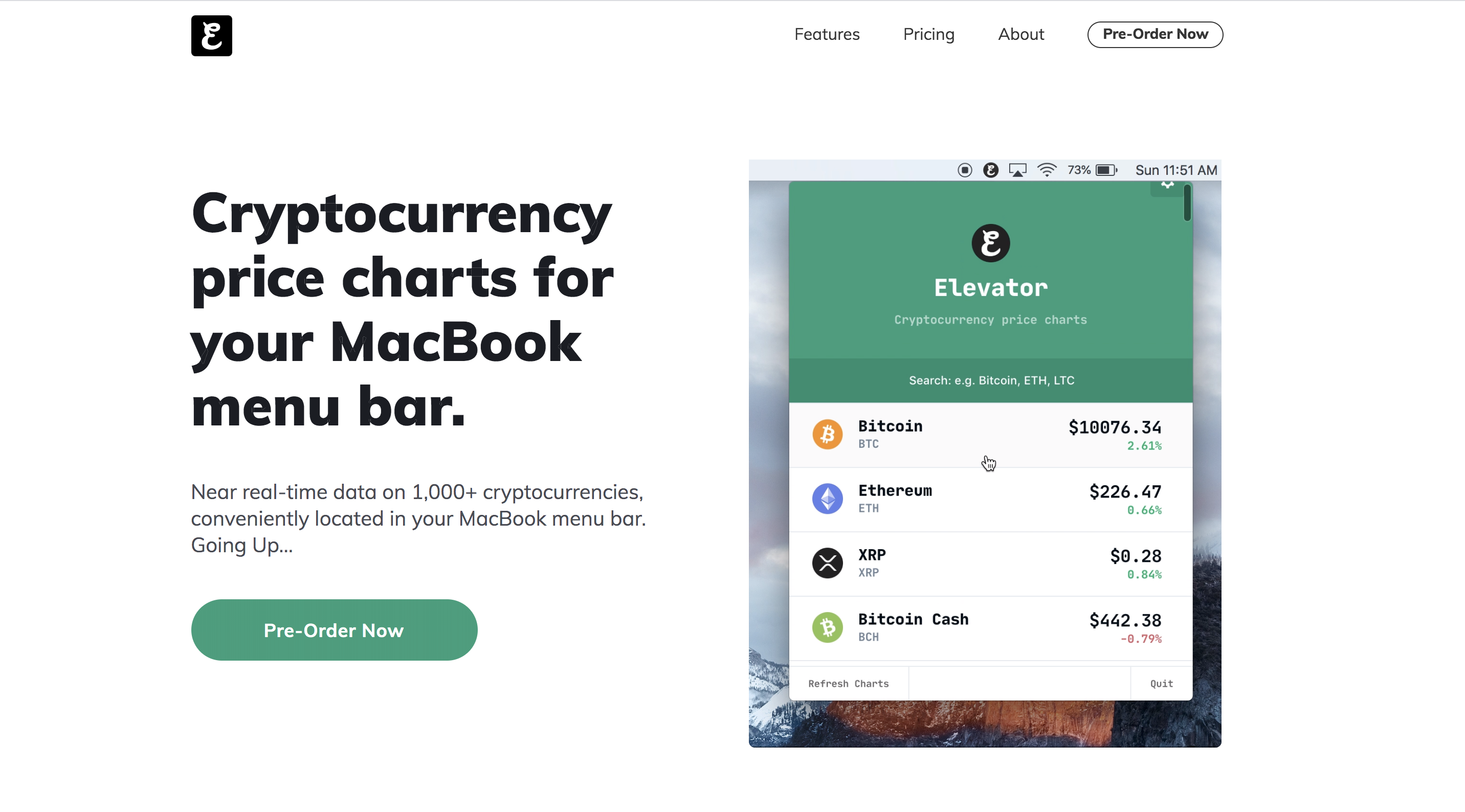 Cryptocurrency price charts, conveniently located in your MacBook menu bar. Market data on 1,000+ cryptocurrencies, updated every minute.