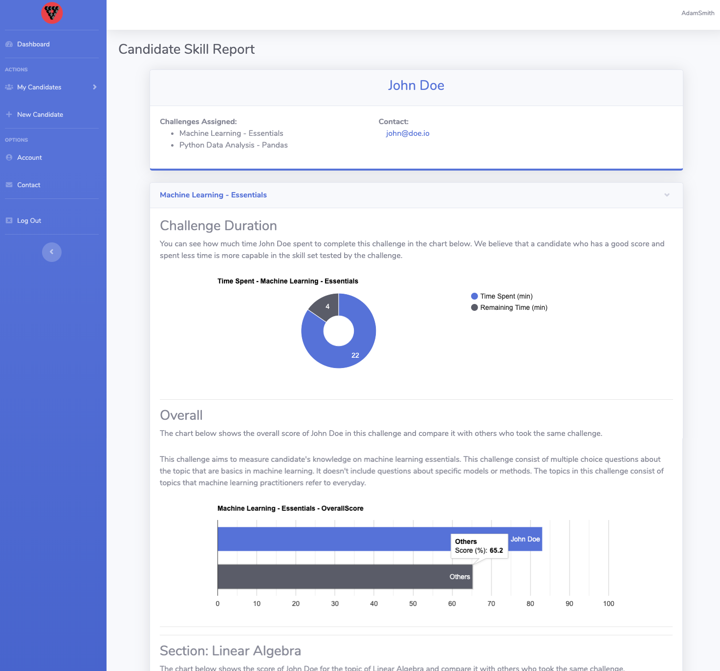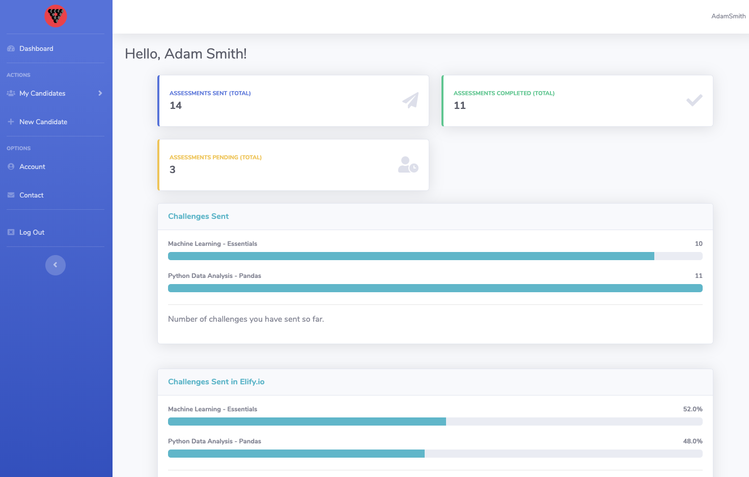 Elify.io is a skill assessment platform for data and machine intelligence job suites, like data scientists and machine learning engineers. Companies and recruiters use elify.io to understand their candidates' technical skill levels.