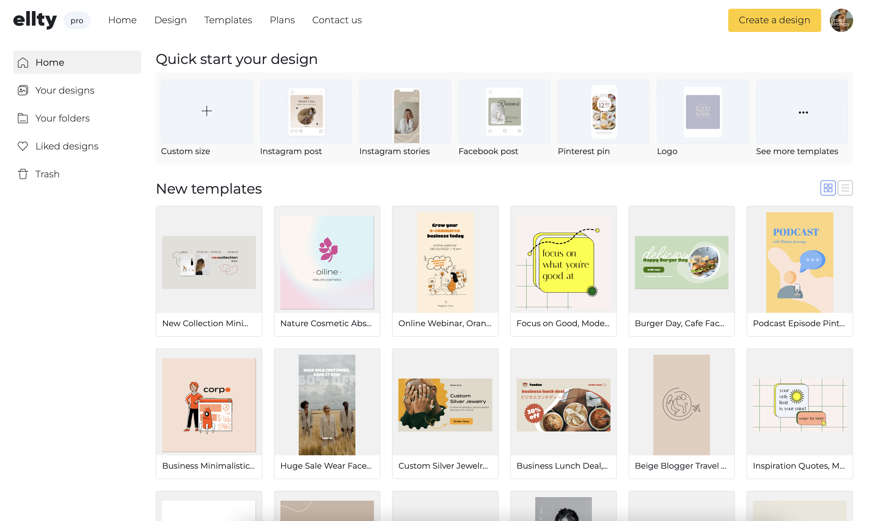 Ellty is online graphic design software. Create stunning designs for presentations, posters, social media, or marketing materials with thousands of professional-looking templates and whatever you’ve imagined in a powerful editor with easy drag-and-drop functionality. Millions of customizable professional layouts, stock photos, elements, and fonts.