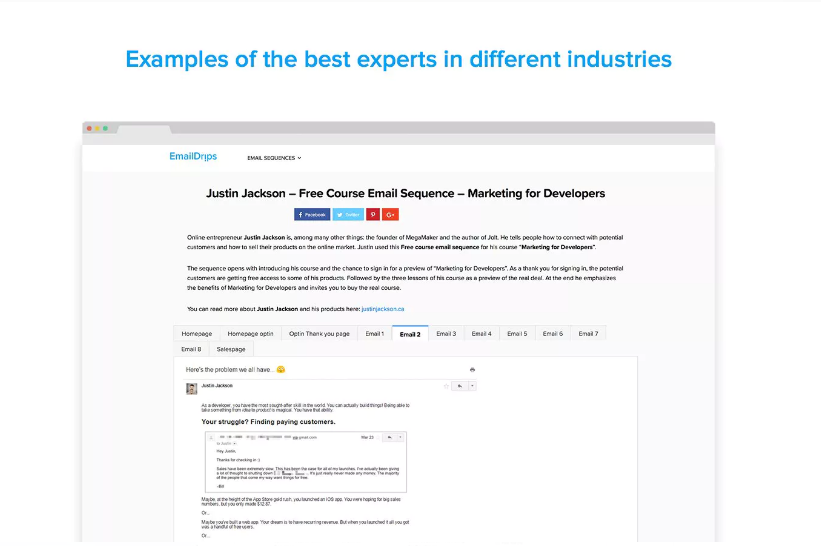 If you want to start using the power of email automation in your business, it's easy to get overwhelmed with all the possibilities. What kind of sequences should I use? How should I structure my emails? What should I write? Because there is no place to get inspiration for email sequences / email drip campaigns, we decided to create EmailDrips. Now you can easily filter through the different kind of email drip campaigns most suitable to your product (without subscribing everywhere)! Get inspired by the best marketers in the business and improve your email drip campaigns today!
