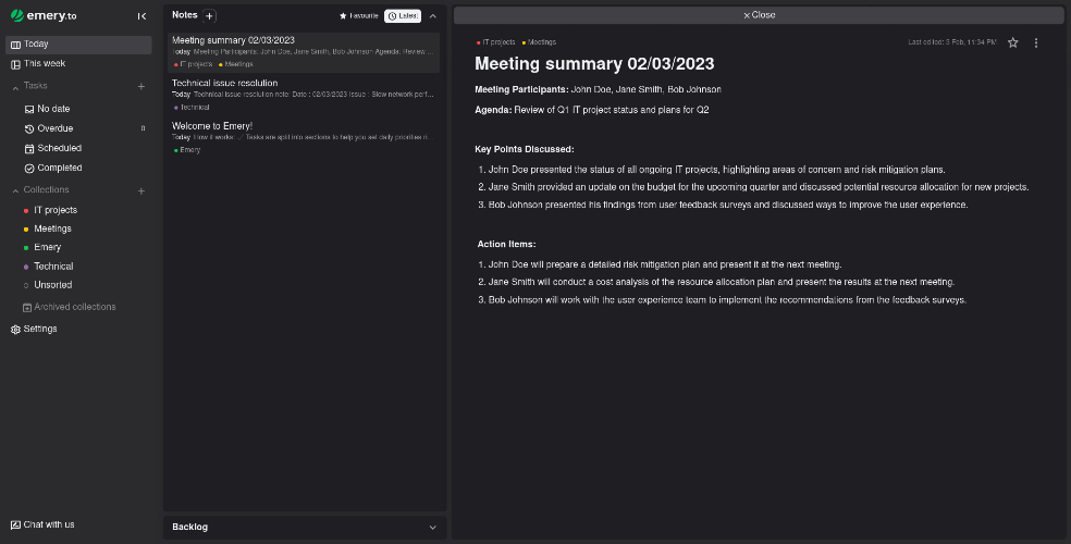 emery.to is a daily planner for busy professionals Combining tasks, notes and calendars in one place, emery.to makes daily planning simple, even on the busiest days Organise daily priorities, prepare for your meetings with private notes and enjoy being effective again and again, one day at a time