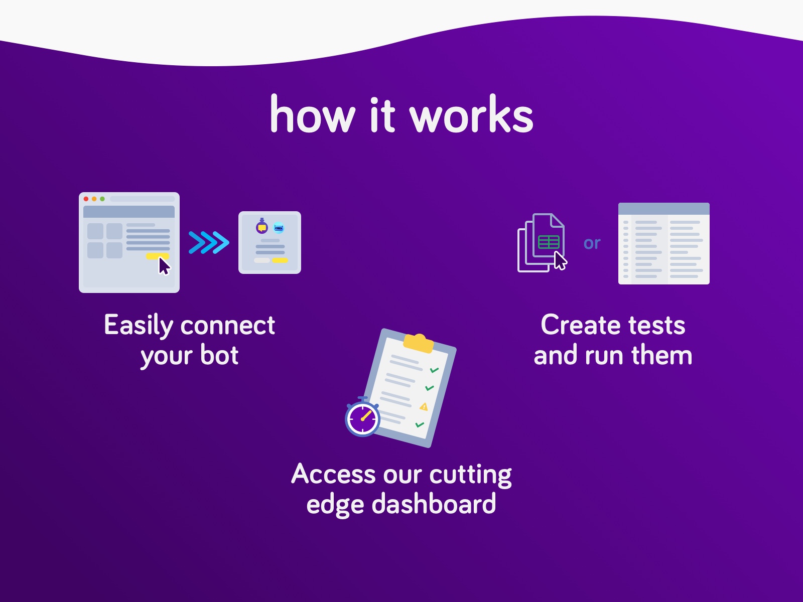 Our platform streamlines your bot testing with automated audits, monitoring and many more features.