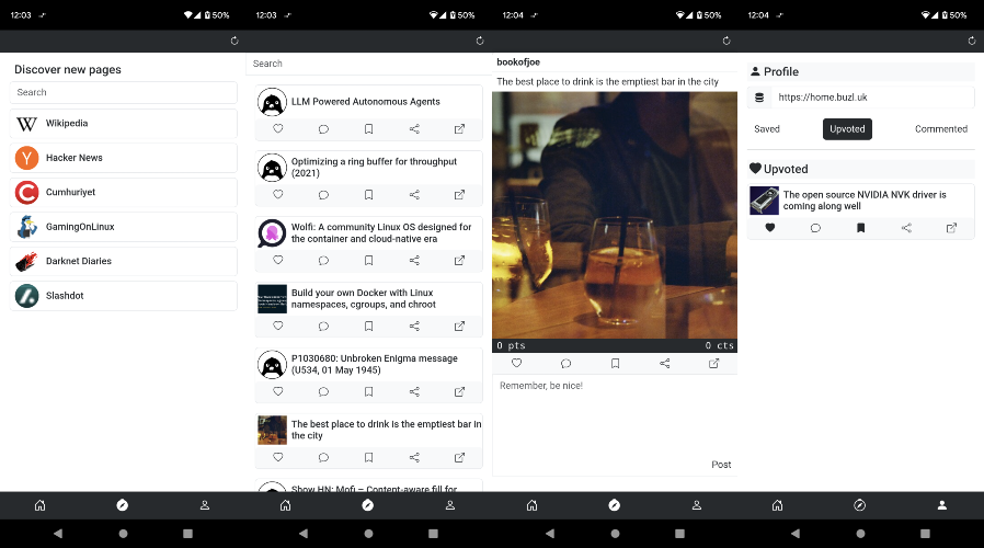 Endless is an open-source mobile app that curates posts from your favorite websites in one place with a common interface. The application uses custom extractors specifically written for each website. This way you can endlessly scroll through posts and save the ones you like without having to deal with ads. With the Endless server I am hosting you can also upvote and leave comments on posts without creating an account! With random tokens linked to your actions you basically use your device as your account and undo your actions in the future without spoiling your identity. It's also possible to run your server with docker-compose and change the default address inside the app to use your own server.