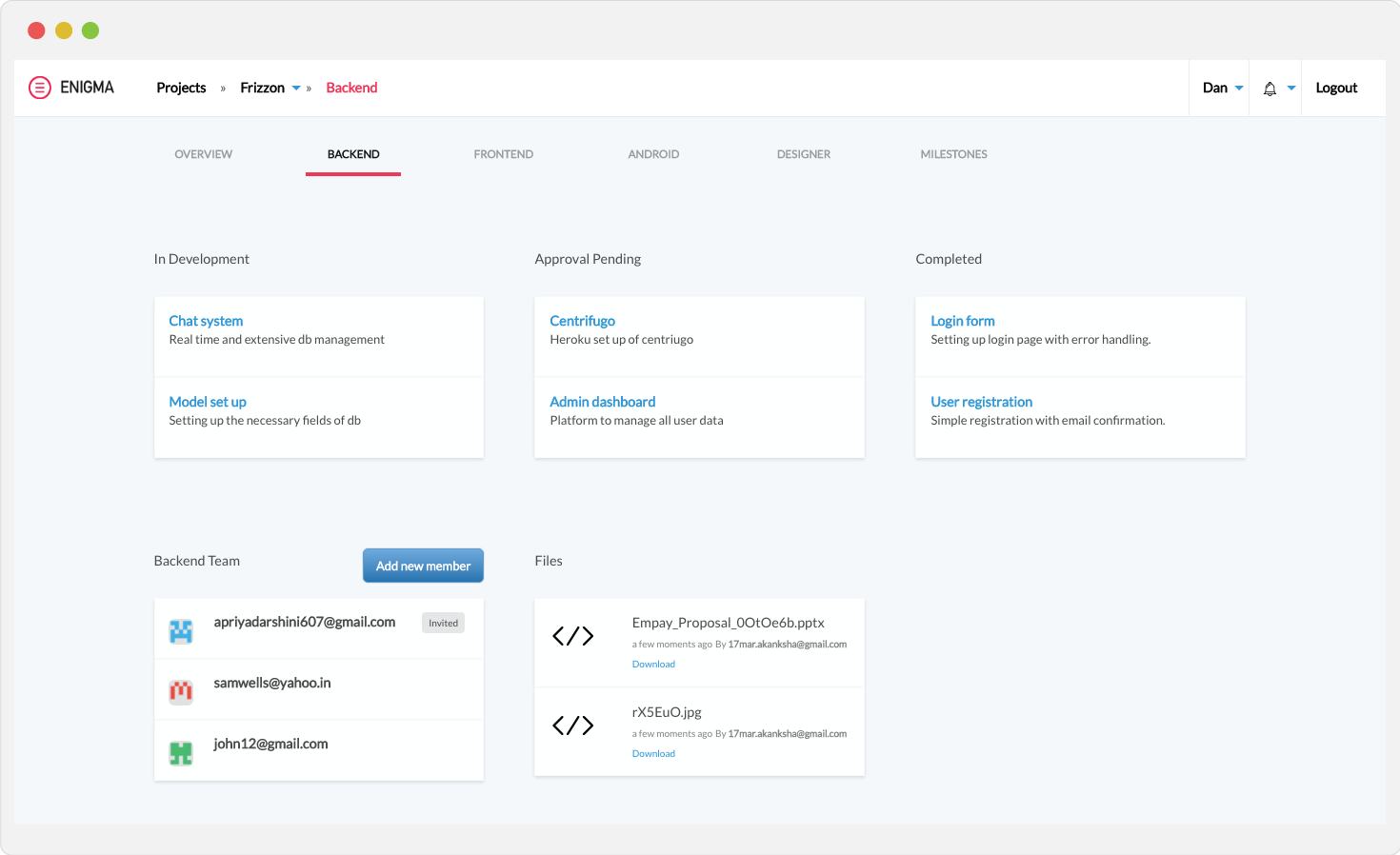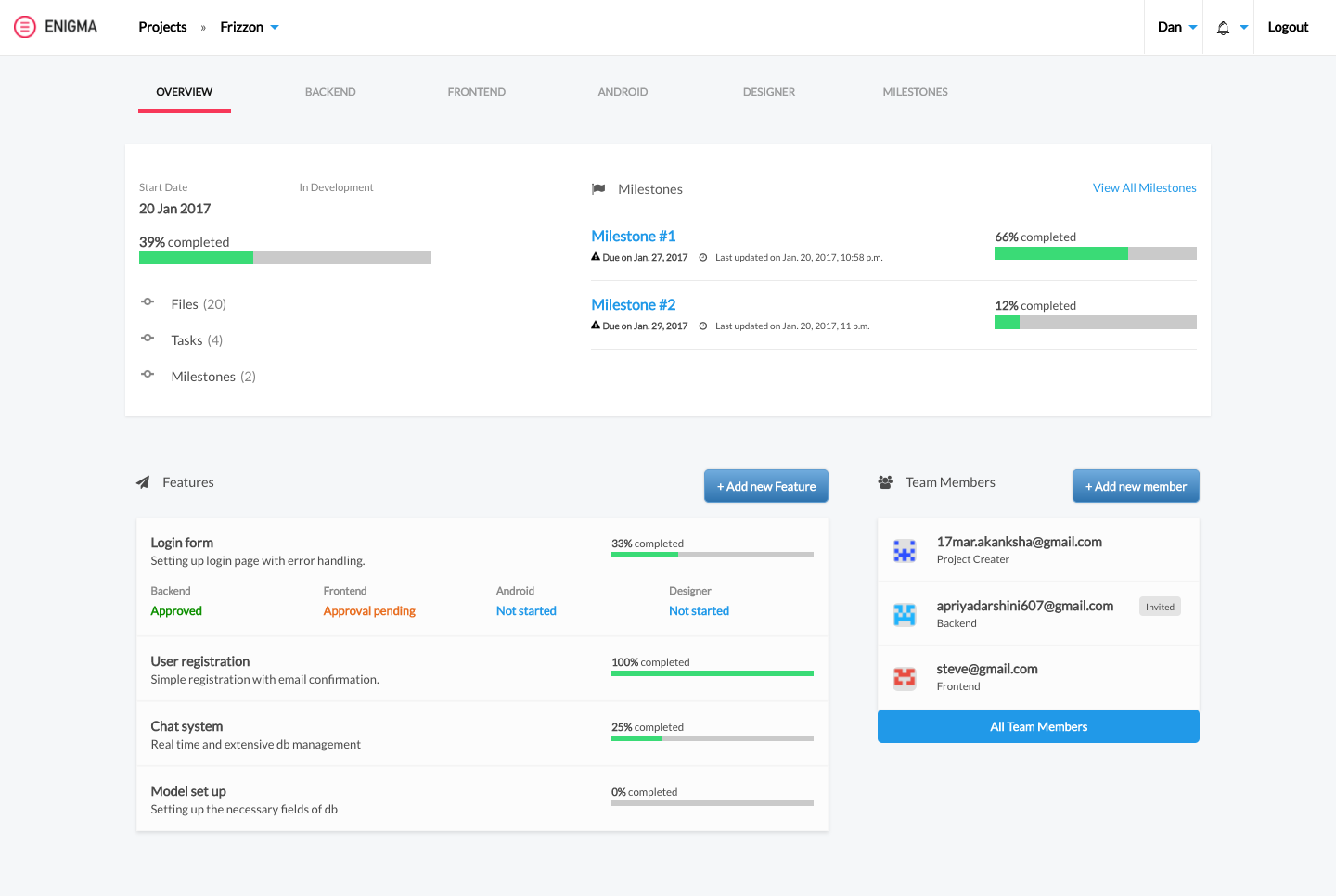 Keeping track of different phases of a project can be chaotic especially for small teams or while working with freelancers. Enigma helps you ease out the management of product development.