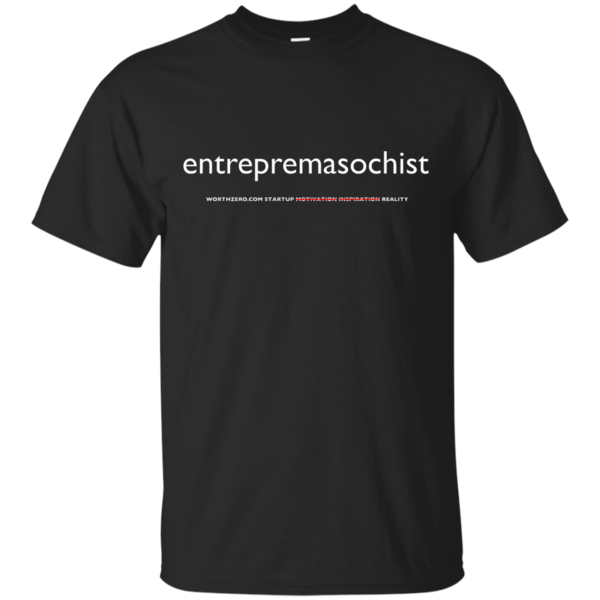 The entrepremasochist t-shirt ... because if you do it more than once (or you would do it again) when you already know what you are in for, you are one. From WorthZero.Com. Products, comics and rants for the entrepreneur who is a realist. No star-jumps, no motivational quotes, no Kumbaya, just start-up ... reality. We help you see that the light at the end of the tunnel could be a train :)