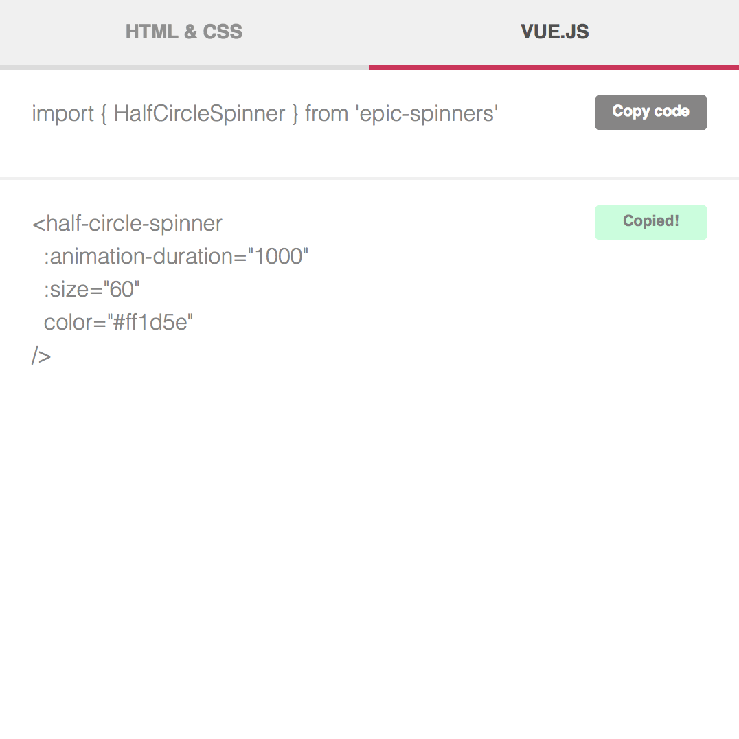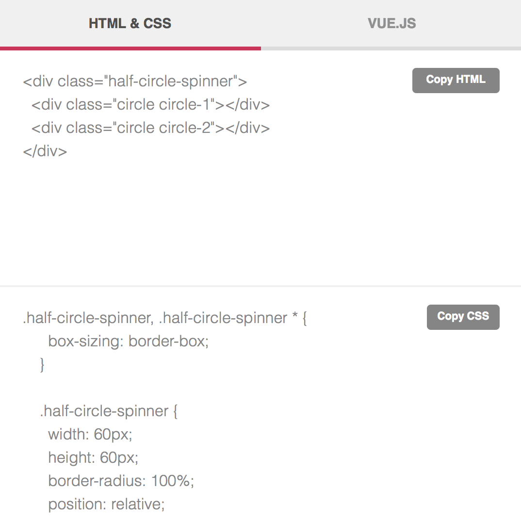 We've collected and crafted a rich collection of spinners animated with css which are available both as html/css code snippets and easily customizable vue.js components. Special thanks to @martinvd for his outstanding codepens :)