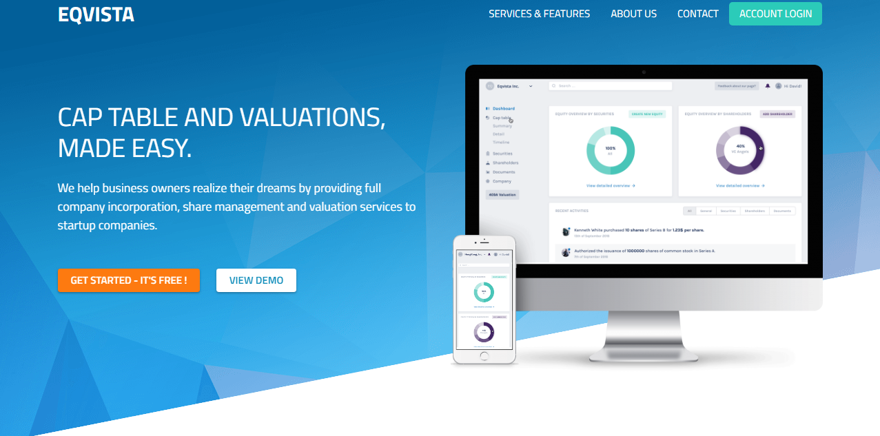 We help business owners realize their dreams by providing full company incorporation, share management and valuation services to startup companies. EQVISTA HELPS ENTREPRENEURS RECORD & MANAGE COMPANY'S STOCKS Our sophisticated software and technology will transform your company, and work to manage your cap table, company shares, valuations and more, in an easy and effective way. Incorporate your company and manage your equity all in one place without all the extra work. Join now and enjoy all the benefits of our system! Visit: https://eqvista.com/