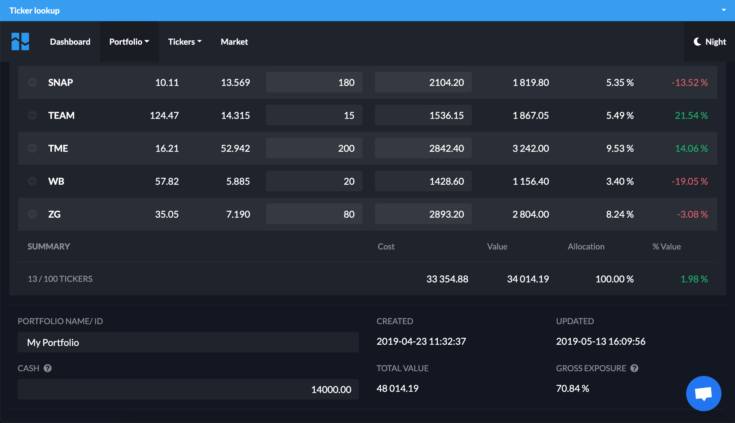 EQZEN lets you track multiple stock portfolios, cash savings, and other investments in a single view. Creating a portfolio does not require an account and it's not linked with your trading account, all your data can be saved (i.e. downloaded) to your device. EQZEN makes it easy to experiment with stock portfolios and compare investment ideas without actually buying anything, it also has basic stock information, such as historical price changes, peers, and news. Highlights: - Easy to get started (registration-free, free plan) - Manage multiple stock portfolios, cash savings, and other investments - Value overview with breakdown into investment types - Add stocks to a track-only portfolio to compare key stats (require subscription)
