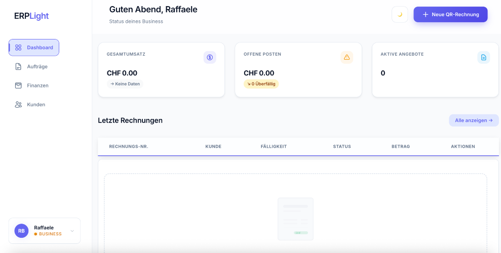 ERPLight is the simplest ERP system built specifically for Swiss small businesses, freelancers, and sole proprietors. Key Features: - Professional invoices with Swiss QR payment slips (ISO 20022) - Quotes and order confirmations in seconds - Automatic VAT calculation for all Swiss rates (8.1%, 2.6%, 3.8%) - Customer and contact management - Instant PDF export and email delivery Why ERPLight? Swiss businesses need software that understands local requirements — QR invoices, Swiss VAT rates, and compliance with OR, MWSTG, and nDSG. ERPLight handles all of this out of the box, without the complexity of enterprise ERP systems. Starting at CHF 0/month. No credit card required.