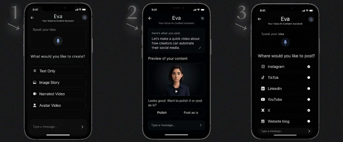 Evatar.ai is an AI-powered social media autopilot that automates your entire content workflow. Eva is a chatbot in your back pocket —creating and posting content adhoc or as your digital twin in 5 minutes. Eva finds trending topics, writes scripts, generates and edits videos with voiceovers, B-rolls, and captions — then posts to TikTok, Instagram, LinkedIn, and YouTube. She even replies to comments and DMs — fully automated, zero effort.
