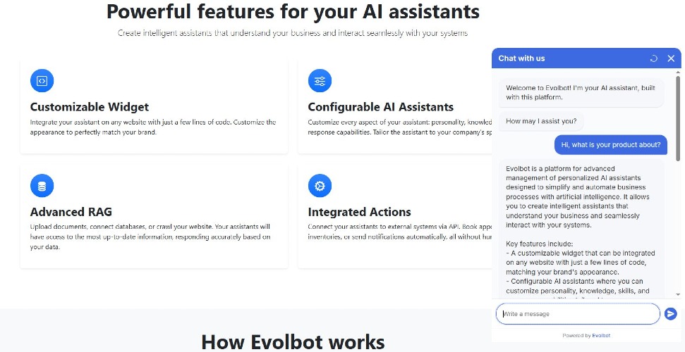 Evolbot is a comprehensive platform that empowers businesses to create, deploy, and manage intelligent AI assistants specifically tailored to their operational needs. The platform enables AI assistants to perform actual tasks beyond simple Q&A - from processing bookings and updating CRM systems to handling customer orders and managing internal workflows. This transforms artificial intelligence from a conversational tool into a genuine digital workforce that operates 24/7 across multiple business functions.