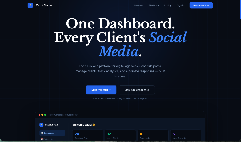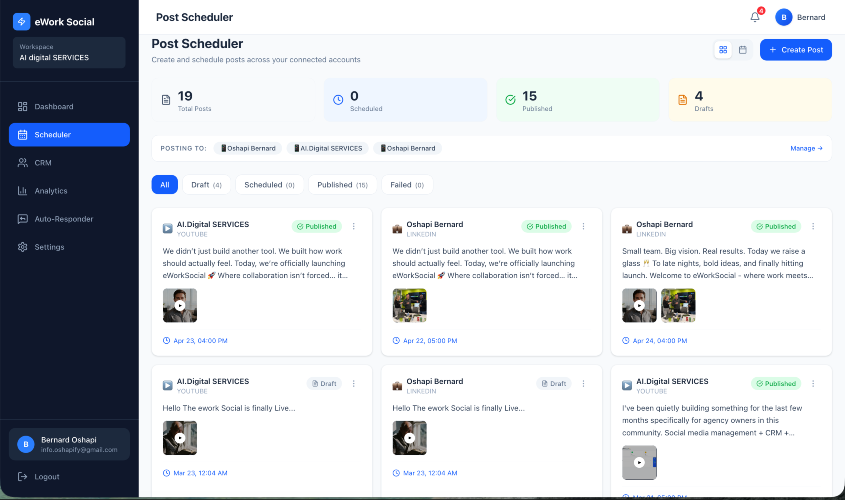 Managing social media for multiple clients shouldn’t feel chaotic. eWork Social is an all-in-one social media management platform designed for agencies, creators, and growing brands—especially in emerging markets. With eWork Social, you can: Generate high-quality captions in seconds using AI Manage multiple client accounts from one workspace Plan and schedule content across platforms Track performance with simple analytics Streamline your content and client workflow We built eWork Social to remove the friction we experienced firsthand—switching between tools, slow content production, and payment limitations for African users. Whether you’re handling 3 clients or 30, eWork Social helps you create faster, stay organized, and scale without burnout. 👉 Live now: app.eworksocial.com