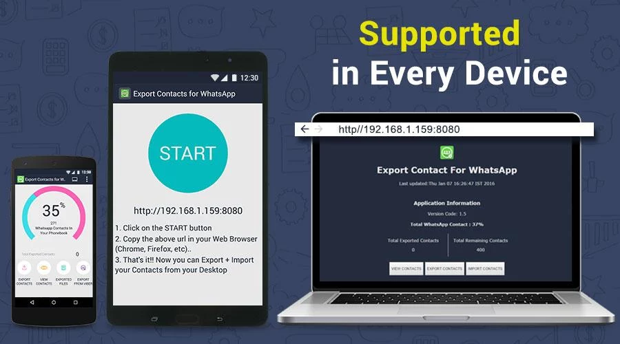 Export Contact for WhatsApp is one of the best “advertising and marketing” Tool/Software for your business promotion. This application is designed for android mobiles and desktop windows platforms. It's fantastic function to Export WhatsApp Contacts that can be used for SMS marketing/advertising products and services for your business. If you are going for promotion of your business’s products or services through mobile SMS Marketing then it will be beneficial to have a backup file of WhatsApp Contact. The main reason behind WhatsApp Marketing being widely used right now is that it gives you direct customers as well as brand awareness. Export Contacts for Whatsapp application is designed in such a manner that it can help marketers as WhatsApp Marketing Software/tool. This application directly filters your contact list who are using WhatsApp or who are registered on WhatsApp and make a single file that have a list of WhatsApp contacts only which can be carried and used directly for a