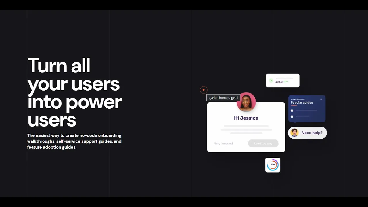 Eyelet is the easiest way to create no-code onboarding walkthroughs, self-service support guides, and feature adoption guides.