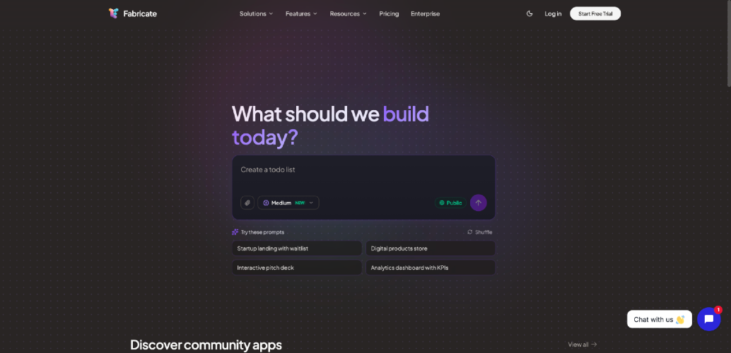 Fabricate is an AI-powered full-stack app builder that turns a simple text prompt into a fully working, deployed web application. You describe what you want in plain English — Fabricate generates the complete frontend, backend, database, and hosting — all production-ready React and TypeScript code. No templates, no drag-and-drop builders, no mockups. Real apps, real code, deployed to a live URL in minutes. Built for startup founders shipping MVPs fast, freelancers delivering client projects in hours, developers eliminating boilerplate, and non-technical creators who want real web apps without learning to code. From SaaS dashboards and client portals to e-commerce stores, CRMs, and AI-powered tools — just describe it and Fabricate builds it. Pricing: Freemium — free tier available, paid plans from $25/month. Stage: Launched / Live.