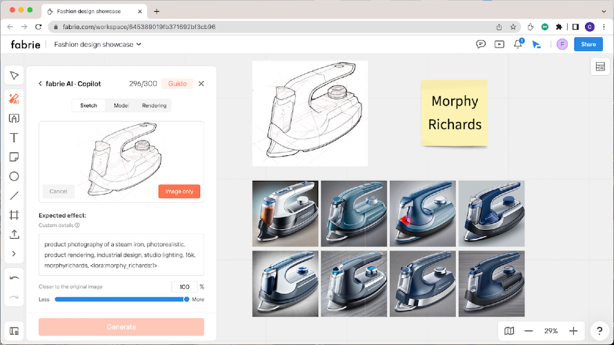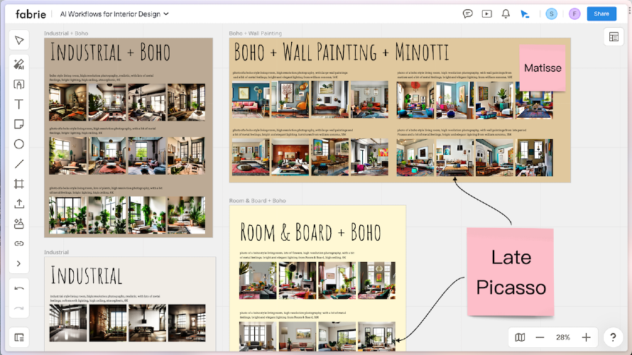 Do you want to onboard your design team with the latest AI tools to turn your ideas into realistic drawings and render sketches within seconds, but hate copying and pasting images from app to app? Do you want to use ChatGPT to generate tables and mind maps, but hate switching tabs all the time? Fabrie is an AI-enabled collaborative workspace made for designers that allows you to use all your favorite AI tools on a whiteboard! We've integrated Stable Diffusion, ControlNet, and GPT4 into Fabrie so that you can work with AI visually and collaboratively.