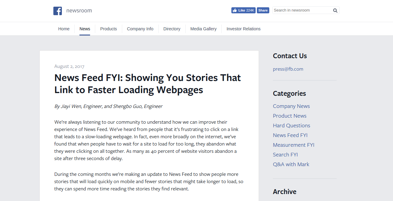 Facebook will soon be rolling out a change to its News Feed that will increase the distribution of links to faster loading web pages – including those that use its own Instant Article format, it seems. The change will negatively impact Pages whose links load more slowly, the company also notes.