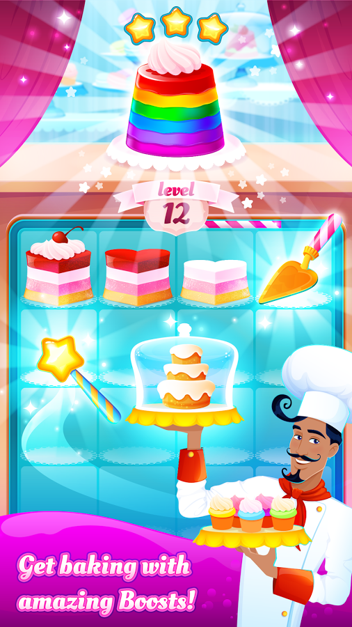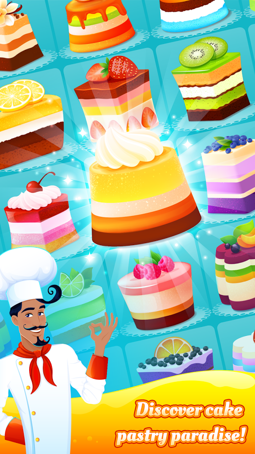 Are you waiting in line? In the subway, plane, bus or taxi? Ditch the boredom & GET BAKING with Fancy Cakes! Bake gorgeous cakes, delicious cookies, mouth-watering muffins, scrumptious pies, yummy pastries and plenty more! Float your way through amazing towns and immerse yourself in this innovative, addictive puzzle adventure that’s hours of fun for everyone! Match and swipe your way through hundreds of fun levels and delightfully charming towns. Discover new tasty recipes and combine dozens of layers of heavenly desserts. Create the most fabulous cakes and share them with friends! Explore the pastry paradise in this addictive and challenging puzzle adventure! It’s hours of delicious fun! GET BAKING and discover lots of sweet recipes!