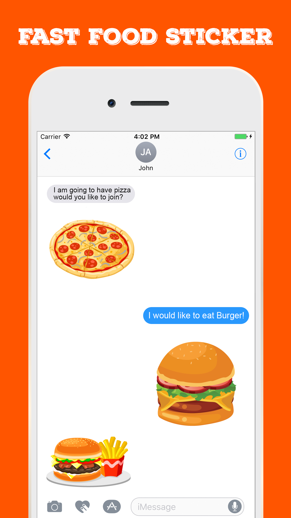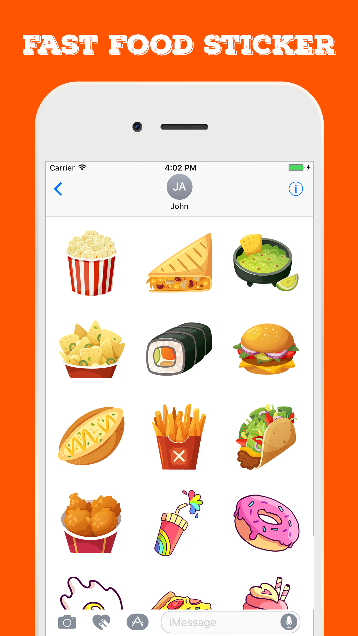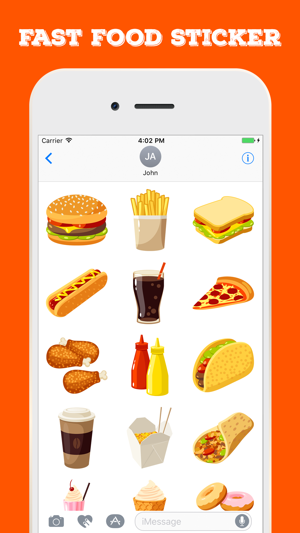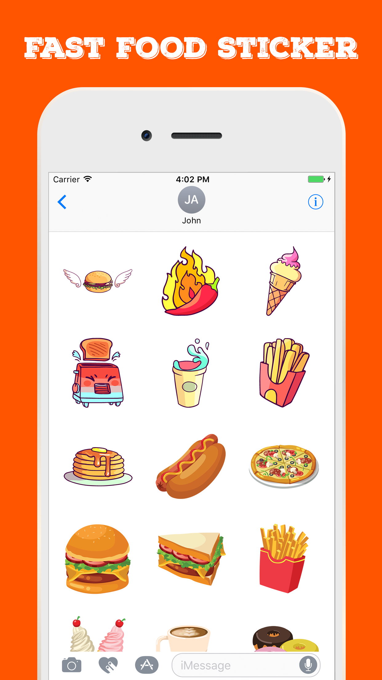 Fast Food Stickers for iMessage App will help you to make chat conversation about food party. It has various food stickers collection such breakfast, lunch, dinner, drink, etc. You tap the fresh food stickers in your iMessage conversation. Easily access to stickers and express feeling via Whatsapp, Facebook, Messenger, etc.