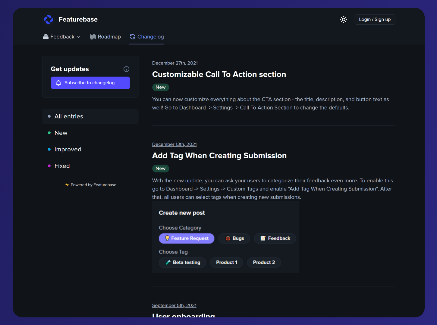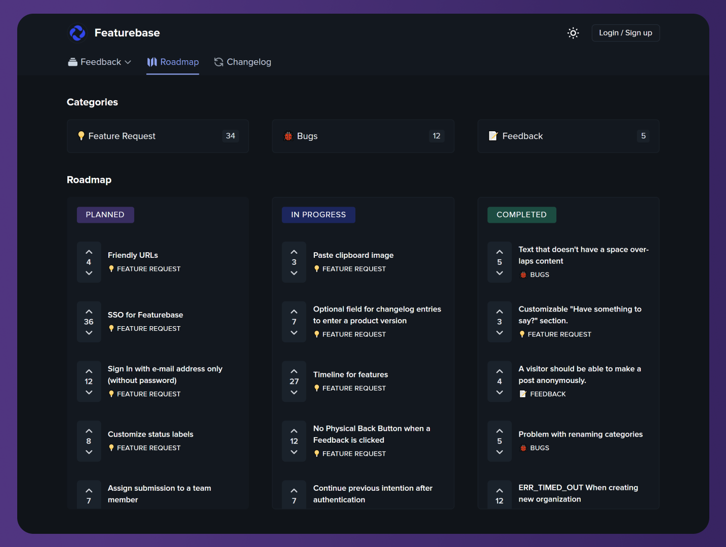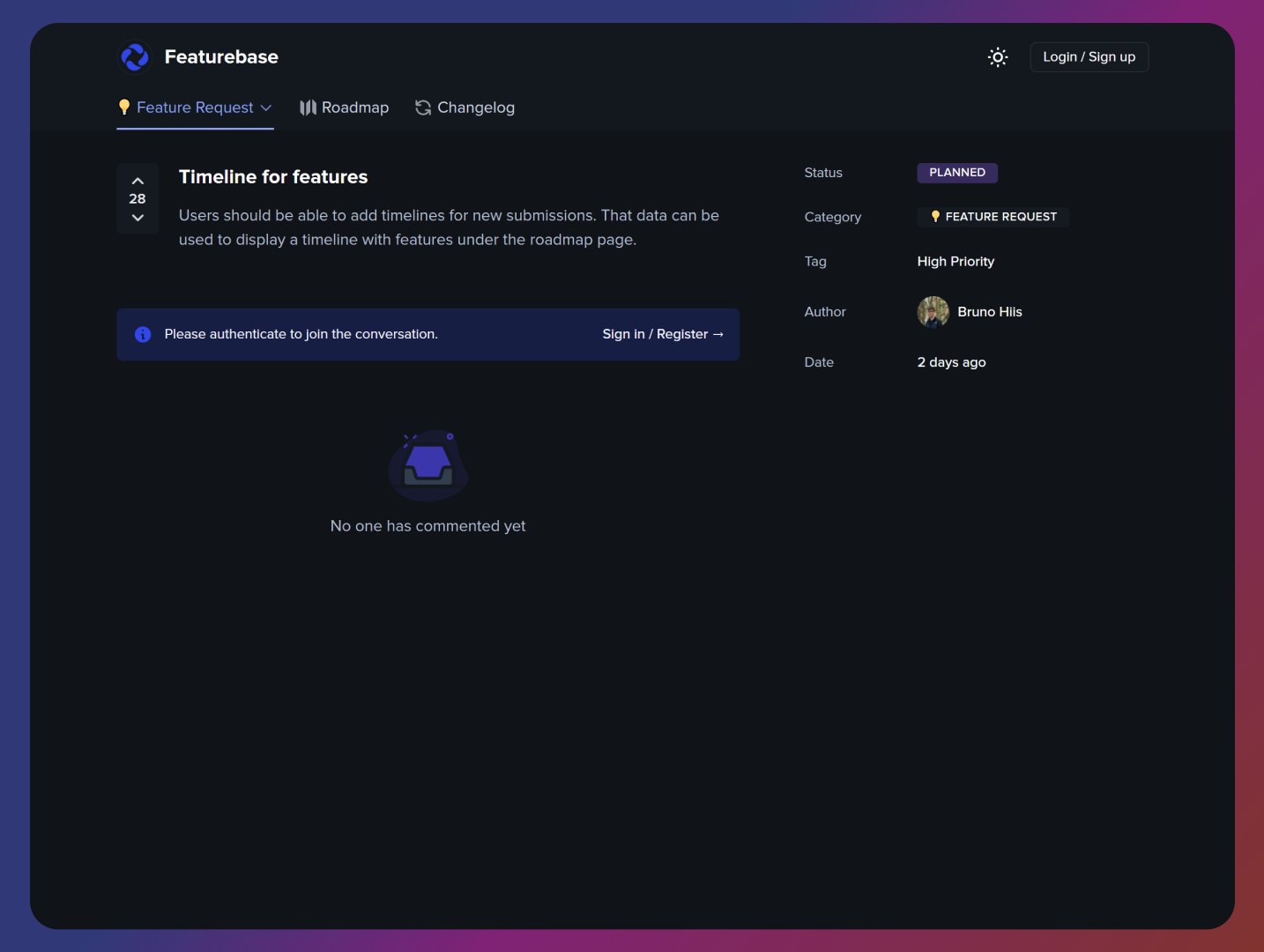 Featurebase is a free public feedback board tool. Create custom feedback boards to capture, manage and organize your feedback, feature requests and bug reports. Capture unlimited feedback for free, no trials. Publish changes through our changelogs and visualize development on a product roadmap. Get 20% off Featurebase Pro with code "BETAPAGE20"
