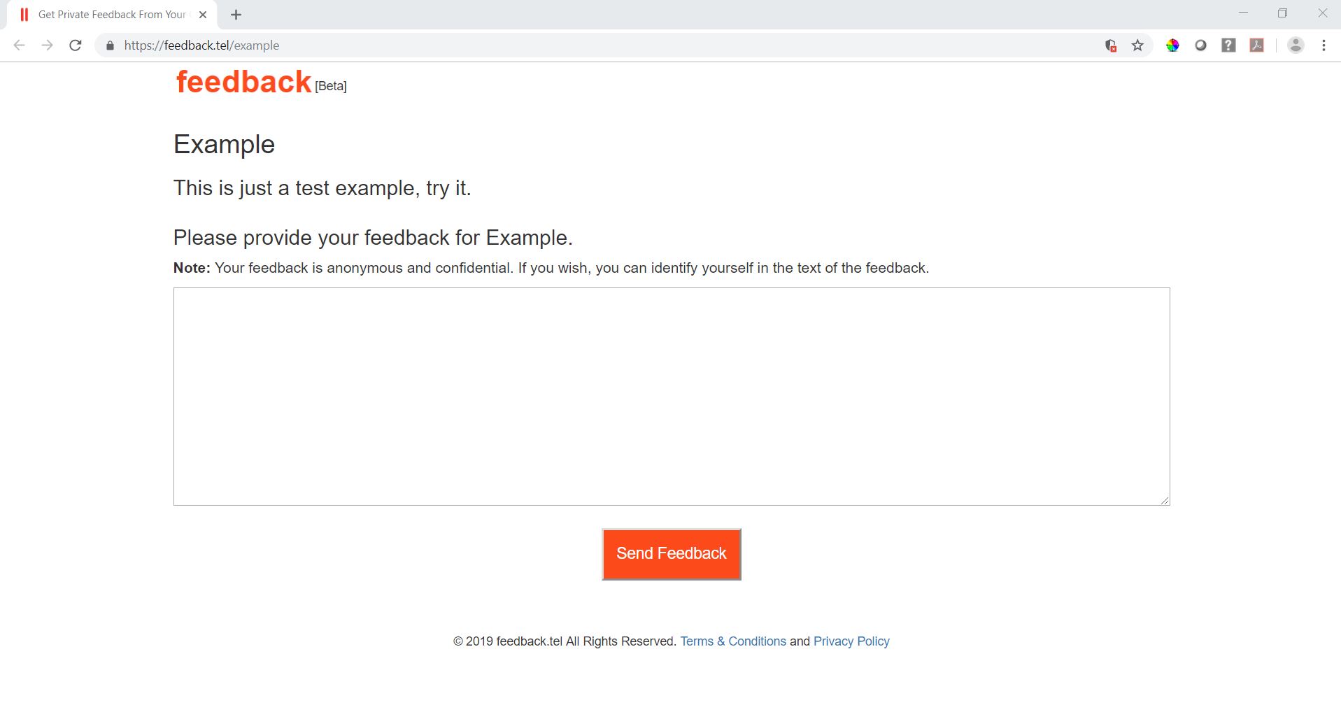 Customer Feedback. Simplified. Get Private and Anonymous Feedback From Your Customers. It is Quick, Simple & Free. Because, The Customer is Always Right.