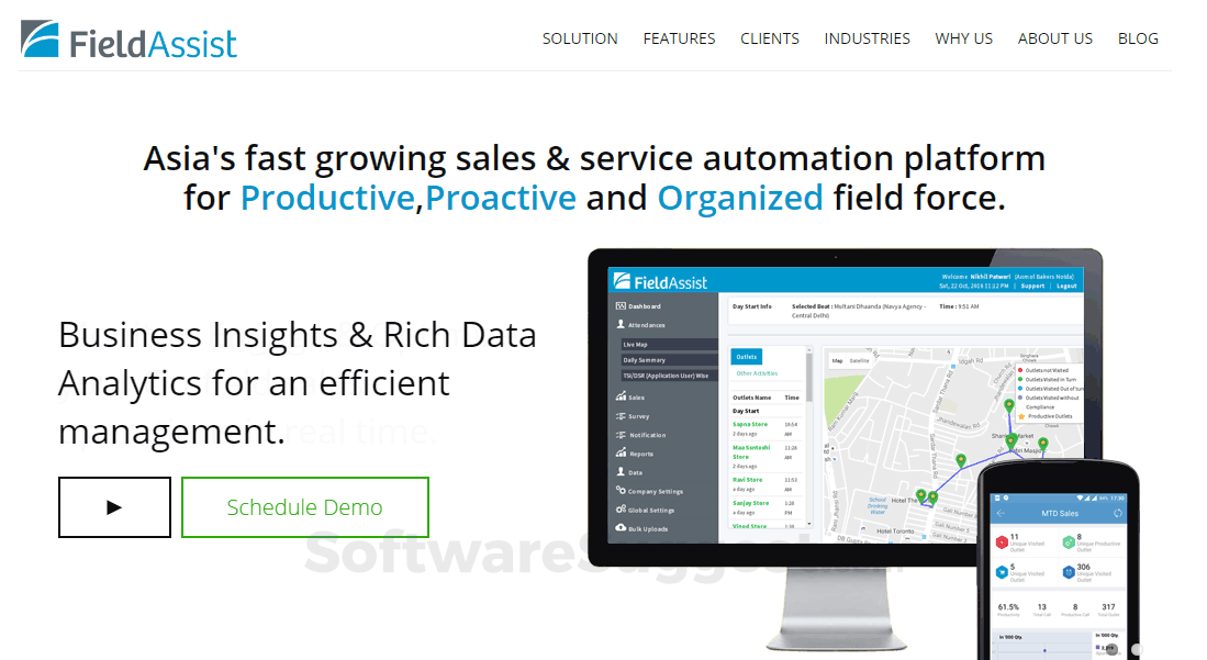 FieldAssist is a Sales Automation platform to catalyze empowerment of field sales teams and power smarter sales decisions with the aim of spurring growth both in the short and long term. Features - 1. Digital Ordering - Obtain higher flexibility with outlet and SKU wise ordering while also providing accurate stock information about each SKU in real time. 2. Measure Productivity - Powerful productivity indices like beat efficiency, adherence to plans, times spent at points of sale and analytics helps sales reps self-assess themselves and improve performance over a period of time 3. Catalog Sync - Display products using the digital catalog which is synced with the main server in real time to instantly update any changes in products lists or specifications. 4. Predictive Analytics - Advanced predictive analytics helps sales reps suggest orders based on ordering history of the point of sale. 5. Instant Custom Surveys- Feel the market pulse with field surveys which can be instantly created and customized by your sales reps. Benefits 1. Real time Field Insights - Obtain data on itineraries adopted by sales reps with sequential listing of outlets along with time spent at each sales call. 2. Sales Performance Reporting - Automatically generate periodic reports measuring the performance of your sales team allowing you to re calibrate your sales team deployment strategy to derive the best results. Get performance reports with periodicity of daily, weekly or monthly reports. 3. Sales Coverage - Use the power of visualization and analytics to get an instant insight into your sales coverage in a particular area of operation.