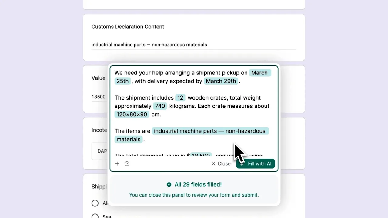 Fill out forms like you’re writing a message. Fillapp lets you type plain text, and it matches your answers to the right fields. No more clicking through boring forms. • Works with Google Forms, Typeform, and more • Learns from what you filled before • Free during early beta Save time. Stay human.