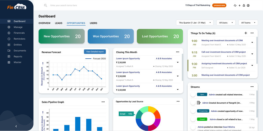 Founded in 2020, FinCRM Technologies is a software company with CRM and office management software solutions in its product portfolio. FinCRM provides help in managing your daily office operations and growing your business to the new heights. Even being a start-up, the feature-packed full-fledged CRM software has the capability to compete sturdily in the market. FinCRM can aid your company’s almost every department, including marketing, sales, HR, customer service, finance, etc. Integrating FinCRM in your process can transform your entire business operation and help you grow exponentially. The CRM integrated office management software helps to streamline your daily operations and frees up your time to focus on other important things.