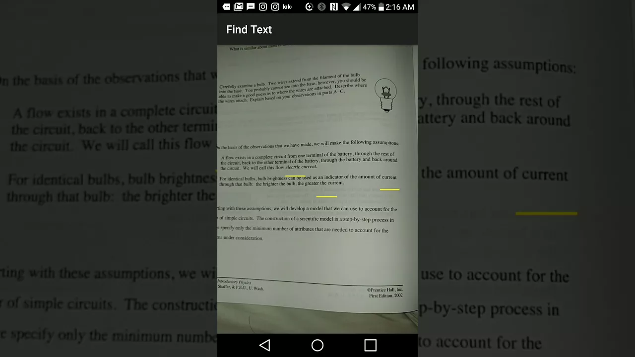 Recently featured on product hunt! Find It - Real World Document Search allows you to search through physical documents just as easily as you could with digital documents. Just enter in your search terms, point your camera at the document, and let Find It do the rest. Find It will scan the document in real time, and highlight the words you searched for. Hold your device steady for a few seconds for best results. The app is mostly intended for printed documents(magazines, textbooks, etc.), but it also works well for documents or other text on a computer which may not be searchable. Be sure to disable flash in this case. If it has (non-handwritten) text, Find It can probably read it! We're using Google's text recognition technology to ensure that Find It is fast and accurate.