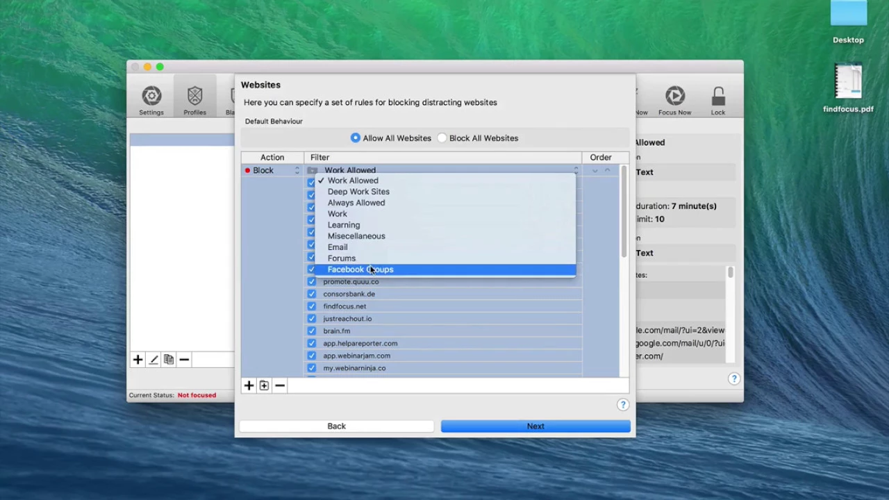 Features: - Blocking of apps and websites - Delay Discounter: Want to break your habit of checking emails every few minutes? Just block yourself from Gmail and your local email client. You can unlock any time but have to wait 5 minutes (or whatever time you like) - Independent “blocking profiles” (Unlock your email client but Facebook and Twitter stay blocked until your lunch break) - 6 different unlock options with various difficulty to match the protection with the addictiveness of the sites and services you use. - Pomodoro timer: Create a sequence of profiles and start it anytime - Break Enforcer: Force yourself to take more breaks during the day. You can use the unlock options to “protect your break” when you want to postpone it or force yourself to take a break. The app has a free version and a paid Pro version. Check it on http://findfocus.net/