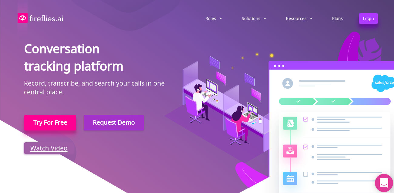Record & Transcribe Automatically record web conferencing or phone calls. Just send a calendar invite to [email protected]. Upload Audio Files If you already have pre-recorded audio files, you can upload them inside the Fireflies Dashboard to have them transcribed and indexed for search. CRM Activity Logger Have call activities automatically logged inside your CRM and save yourself from data entry. Fireflies works with Salesforce, Hubspot, Zoho and more. #How Auto-Call Record Works Connect your calendar Fireflies dials into your meetings as a participant when you send a calendar invite. Fireflies can automatically recognize and join new events. Include a dial-in number Somewhere on the calendar invite make sure there is a dial in number/pin. We work with 15+ leading providers like Zoom & WebEx. Get your call captured The Fireflies dashboard lets you read your transcript and listen to the call. Jump around time stamps & use smart search to review a 1 hour call in 5 mins.