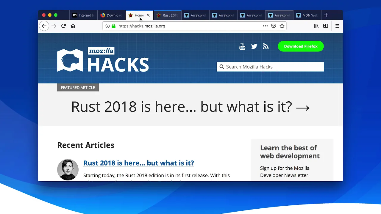 #New Firefox interface features - Multiple tab selection - Devtools improvements #New CSS features in 64 - Standardizing proprietary styling features - New media queries - Multi-position color stop gradients #JavaScript improvements #New Web API highlights - Fullscreen API unprefixed - WebVR 1.1 in macOS - startMessages() for Service Workers #New Add-ons Features - Context menu enhancements - Custom content in the Dev Tools inspector - Managing add-ons updated #Privacy features for your protection - Symantec CA Distrust - Referrer-Policy for stylesheets - buildID fixed timestamp