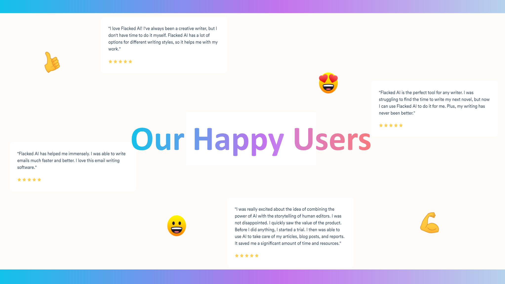 With tight deadlines and many different considerations, it becomes difficult to write for businesses. What if a simple click could generate an interesting paragraph in a style that follows the same theme as your company or brand? Introducing Flacked AI. Flacked AI is an all-in-one platform featuring AI-powered Summarizer, Copywriter, and Email Writer for all your needs. Features: Flacked Summarizer: Flacked Summarizer provides a succinct summary of your content. It can digest any document, and summarize it into a beautifully written summary that tells you as much as possible about the subject. Flacked Writer: Flacked AI writes highly optimized, engaging blog posts and web content. Save time by letting our AI-powered software write a copy that sounds like you. Flacked Communication: Delegate all of your tasks related to email writing to Flacked Communication and enjoy a more productive workday. If you feel like you're spending too much time on your writing, get Flacked.