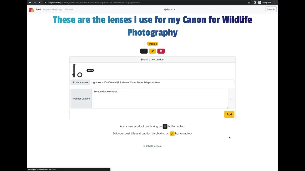 Discover and share products from Amazon on FlairPost. Automatic product fetching and affiliate tags make it easy to add new products and earn passive income. Follow users to see their posts and connect with like-minded individuals. Find new products and earn money with Flairpost.