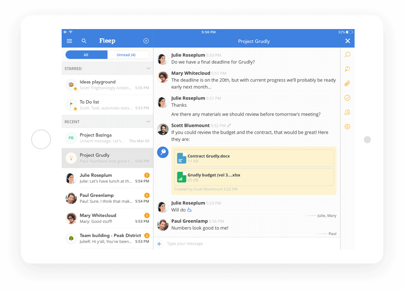 Fleep is an ideal way to communicate. A flexible messenger that integrates with email and lets you store and share files easily.