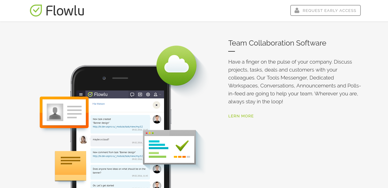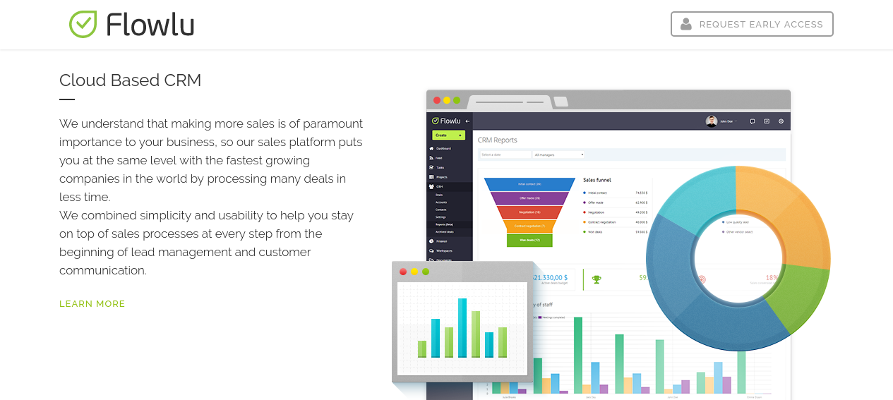 Project management software and collaboration tool for teams of all sizes. CRM For Business, Project Management software, Collaboration, Invoicing, Task Management and many other business tools! Cloud Based CRM : making more sales is of paramount importance to your business, so our sales platform puts you at the same level with the fastest growing companies in the world by processing many deals in less time. Finance And Invoicing Software : Design and send professional invoices easily. Flowlu will help you optimize your expenses and increase your profit. Project Management Software : The competition and business operating speed increase constantly. Stay on top of the competition and keep all your projects under control. Stay focused on your business’s goals. Team Collaboration Software : Have a finger on the pulse of your company. Discuss projects, tasks, deals and customers with your colleagues.
