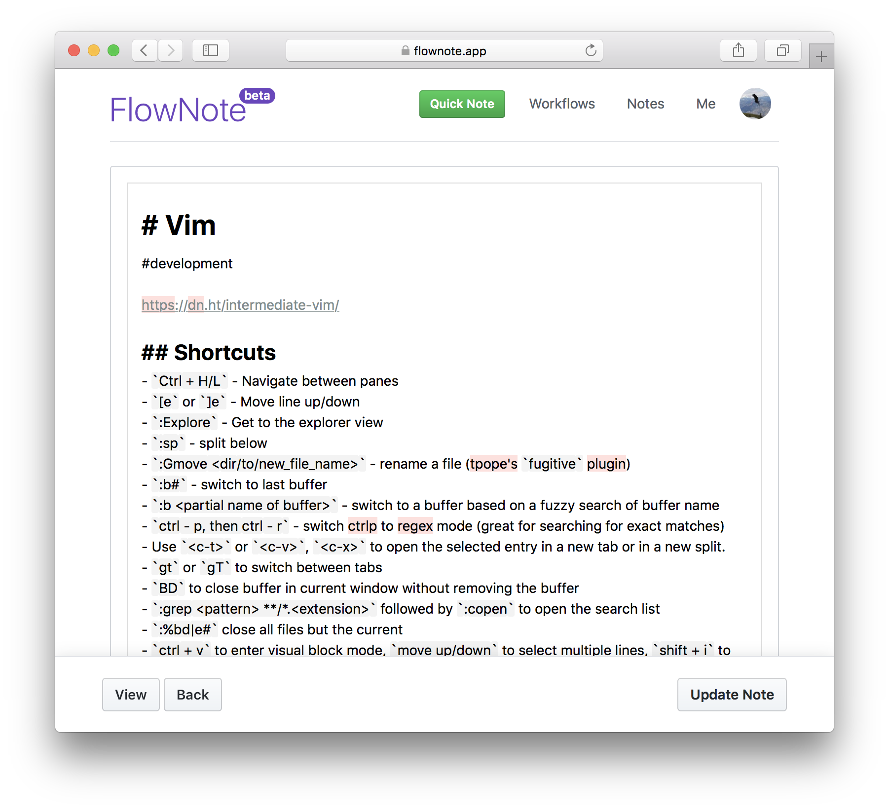 Hello! For the past six months I've been developing a simple note app to aid my workflow. Recently, I've spent a lot of time at work doing architecture work and a lot of that time has been researching new technologies and unfortunately this hasn't left me a lot of time write code. This application has served the purpose of allowing me to continue to write some code on the side and build out a simple and powerful tool to share the research I've been working on with my team. There really isn't anything special about the application when it comes to notes apps, it uses a pretty generic flavor of markdown for writing and formatting your notes, it allows you to make any of your notes public and provide people with a share link to read your content, it also encrypts the data at a column level to add an extra layer of security, it has a feature to add a little more structure to your notes by having multiple input boxes on a single note, and its also surprisingly fast! The app is currently free to use (very much in beta) and is still lacking some features but I wanted to get it out there and get some feedback from the community. Let me know what you think! Thanks!