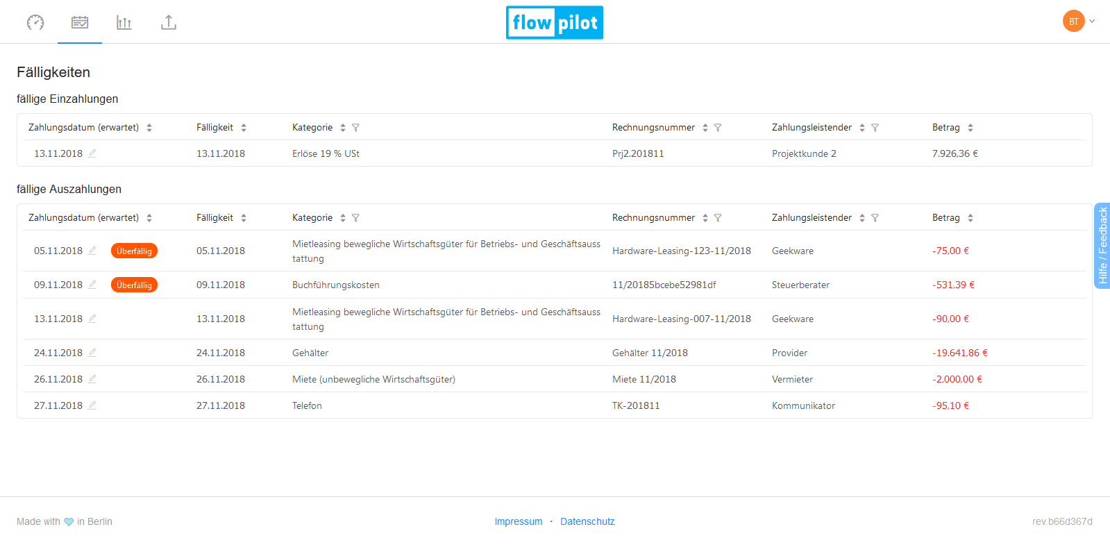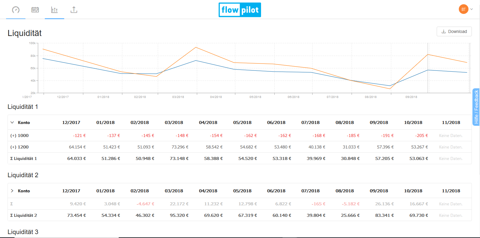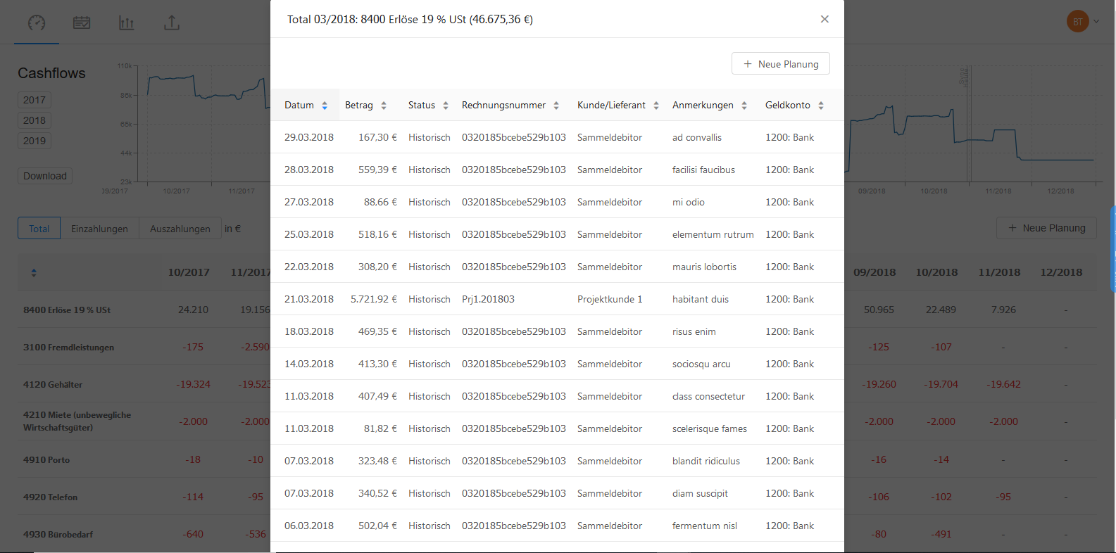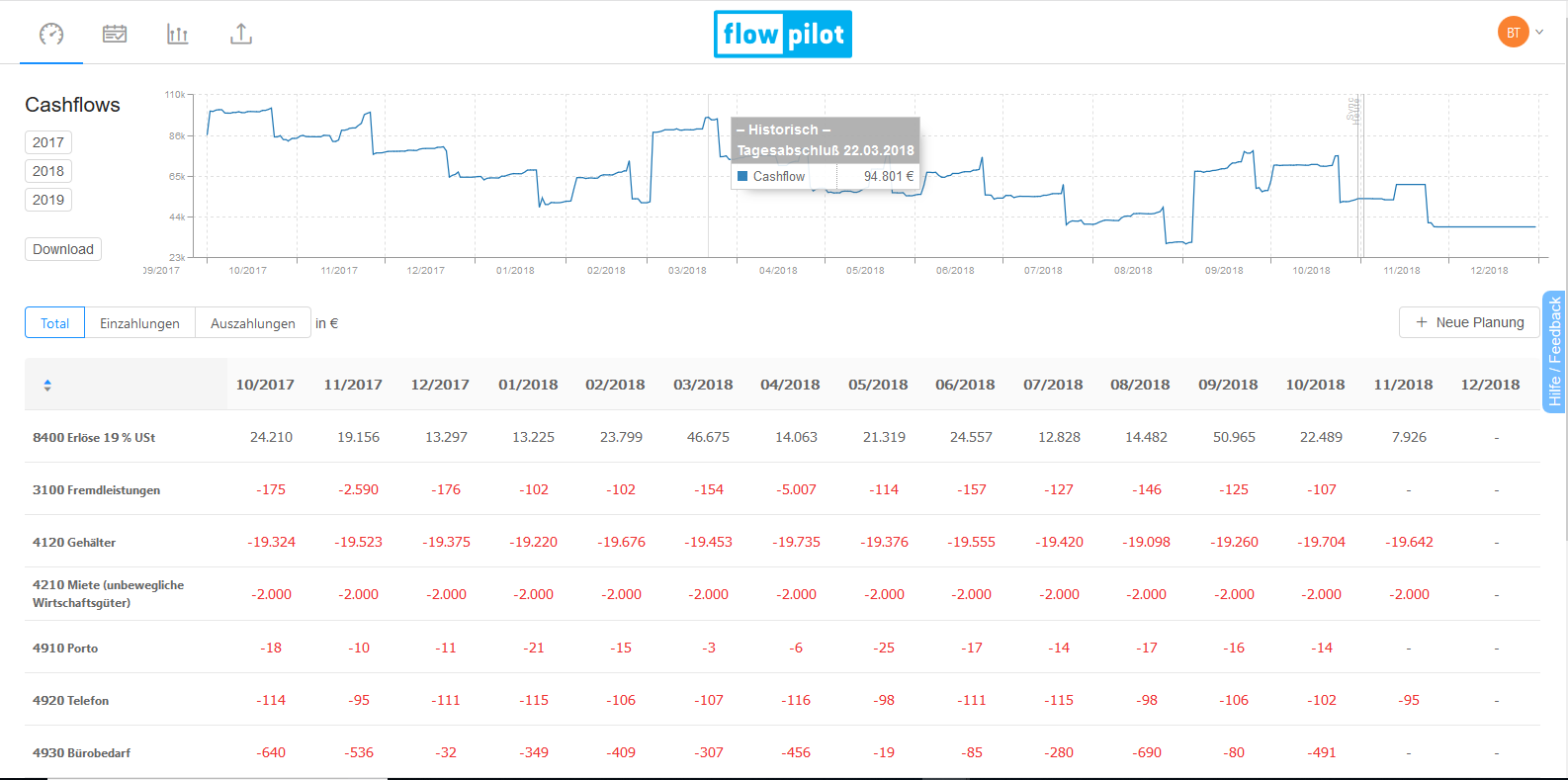 The easiest way for businesses to plan and manage their cash flow actively. Cash flow planning has never been this easy! Simply upload your accounting data and get an overview of your current and forecasted cashflow. Recognize risks and optimization potentials early as they arise and get tips how to eliminate them. Make better decisions by easy and quick simulations simply without effort. Test our highly automated cash flow management software 14 days for free!