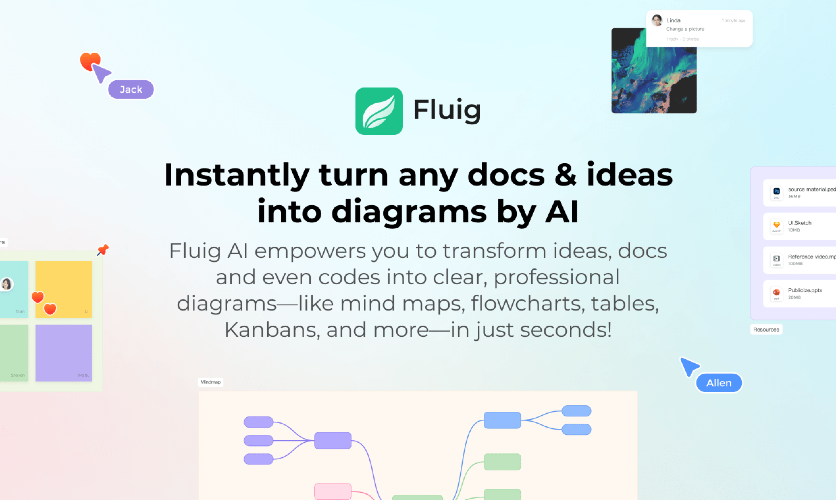 An AI that allows you to work like a genius.Generating diverse diagrams from your ideas and documents, this powerful AI tool supports mind maps, flowcharts, fishbone diagrams, timelines, class diagrams, architecture diagrams, tables, cards/kanban, various documents, even codes, and even more graphics with ease. Whether for brainstorming, organizing information, or presenting data, it enhances clarity and sparks creativity.