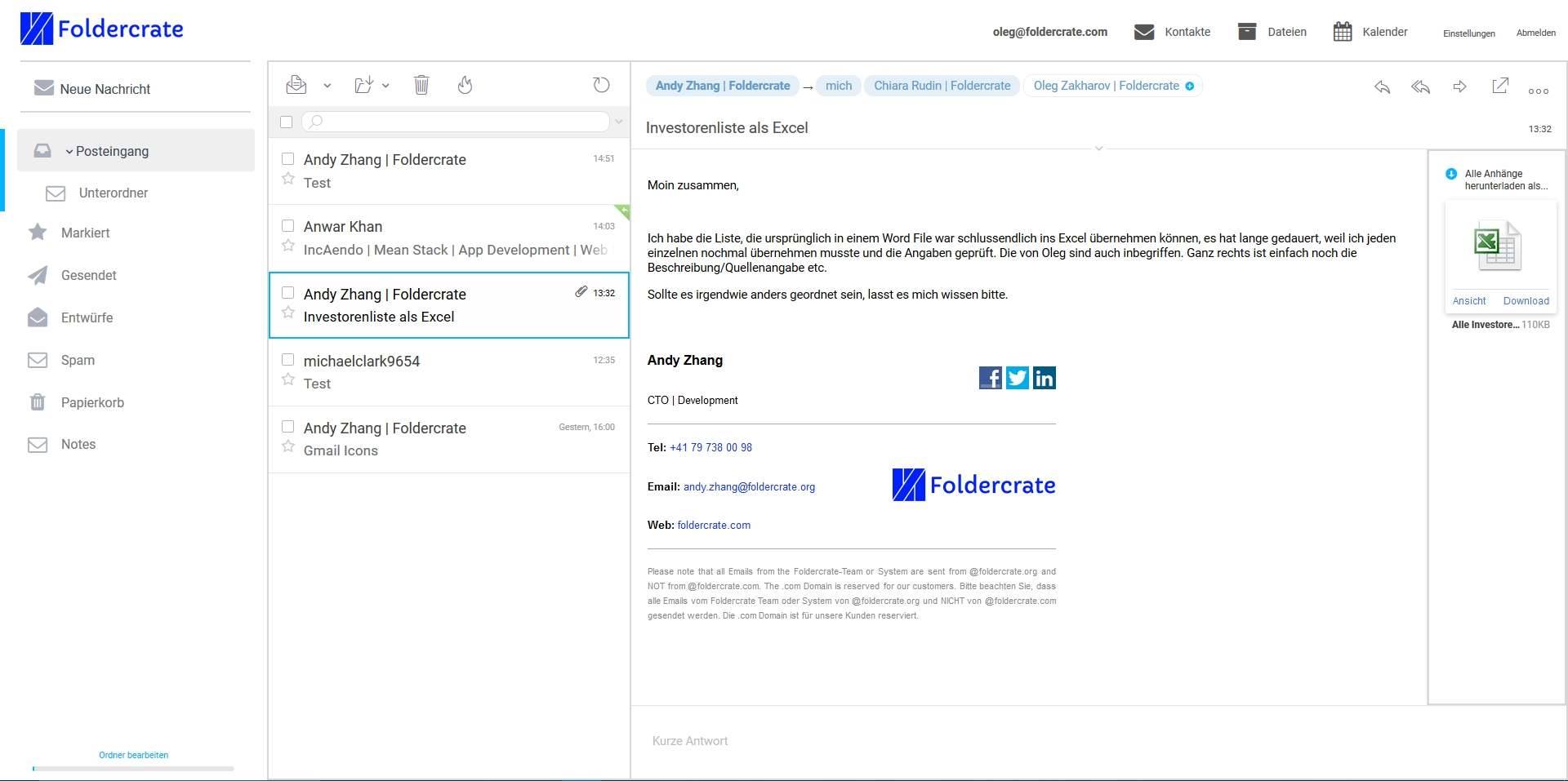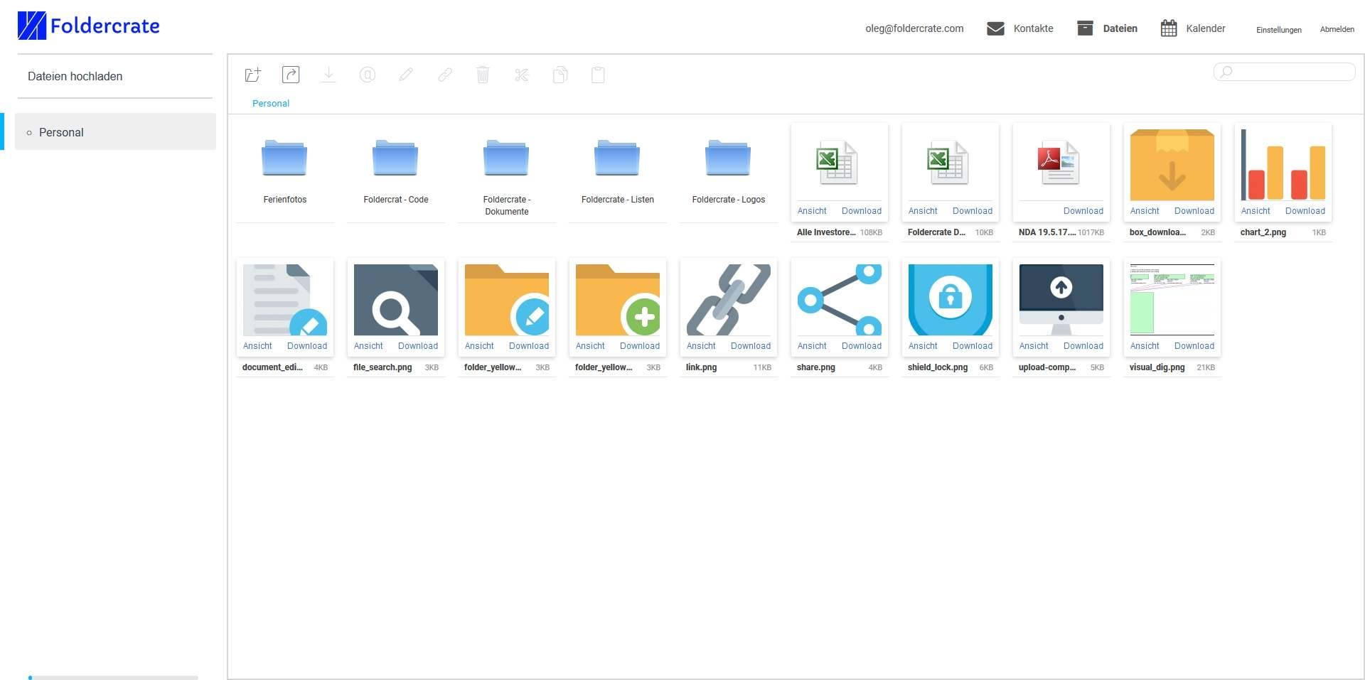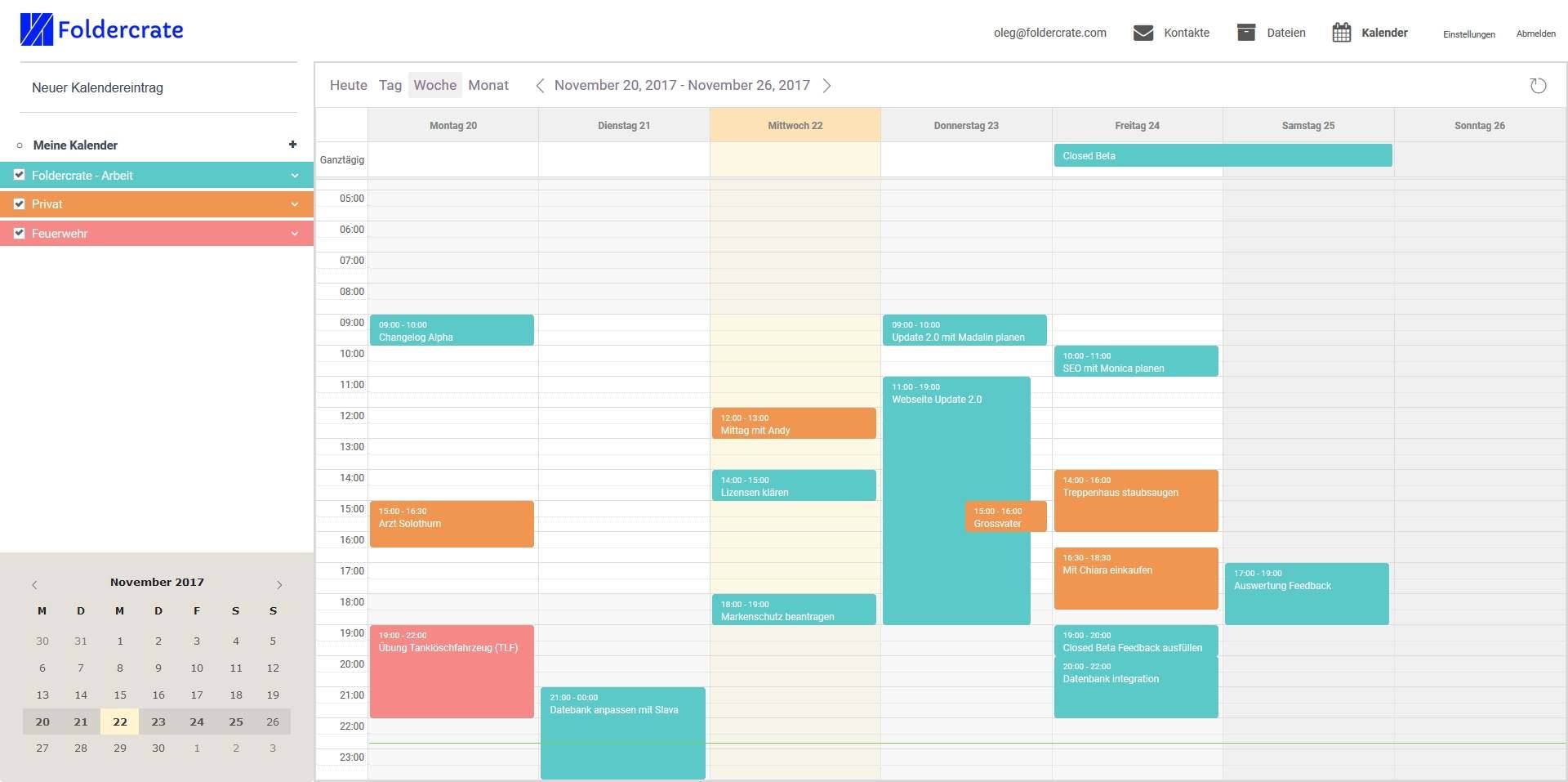 Foldercrate combines standard online services like email, cloud storage, calendar, notes, friend list and chat in a single service. This leads to a better overview and an easier management for everyday life and work. With Foldercrate you don't need to choose either between freedom and features or privacy and security, you can have both. You will be able to customize many things, more options to choose and all that without the fear of being monitored because of zero knowledge. Please mind that many things are still in development.